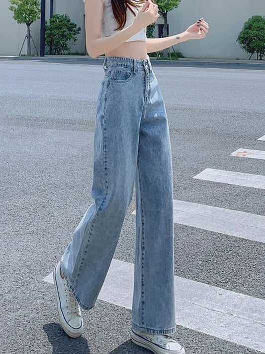 2024 New Women's Jeans Fashion High Waist Y2k 2000s Straight Wide-legged Pants Girls High quality BLue trousers New Style