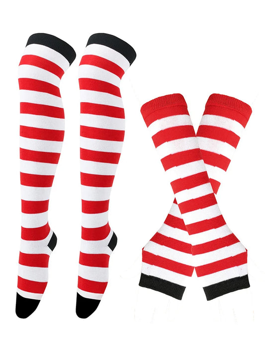 2023 Womens Stockings Arm Sleeve Gloves Set Striped Thigh High Socks Ladies Girls Black White Long Over Above Knee Socks Lolita