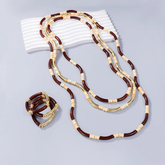2024 New Wooden Splicing ZAA Necklace For Women Boho Retro Neck Jewelry Statement Bracelet Necklaces Set