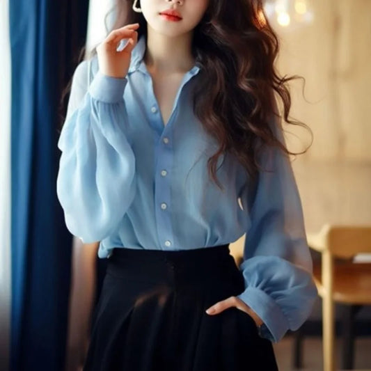 2024 Summer New Popular Beautiful High-end Elegant Women's Shirts French Sweet White Dotted Shirts for Women with Puff Sleeves