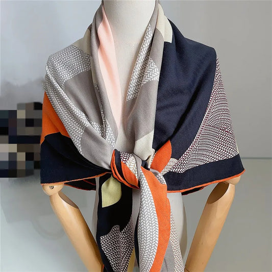 135CM New Warm Jump Horse Cashmere Silk Scarf Designer Luxury Pashmina Shawls for Women Square Hand Rolled Edges Stole Blanket