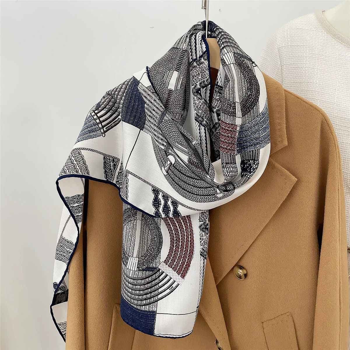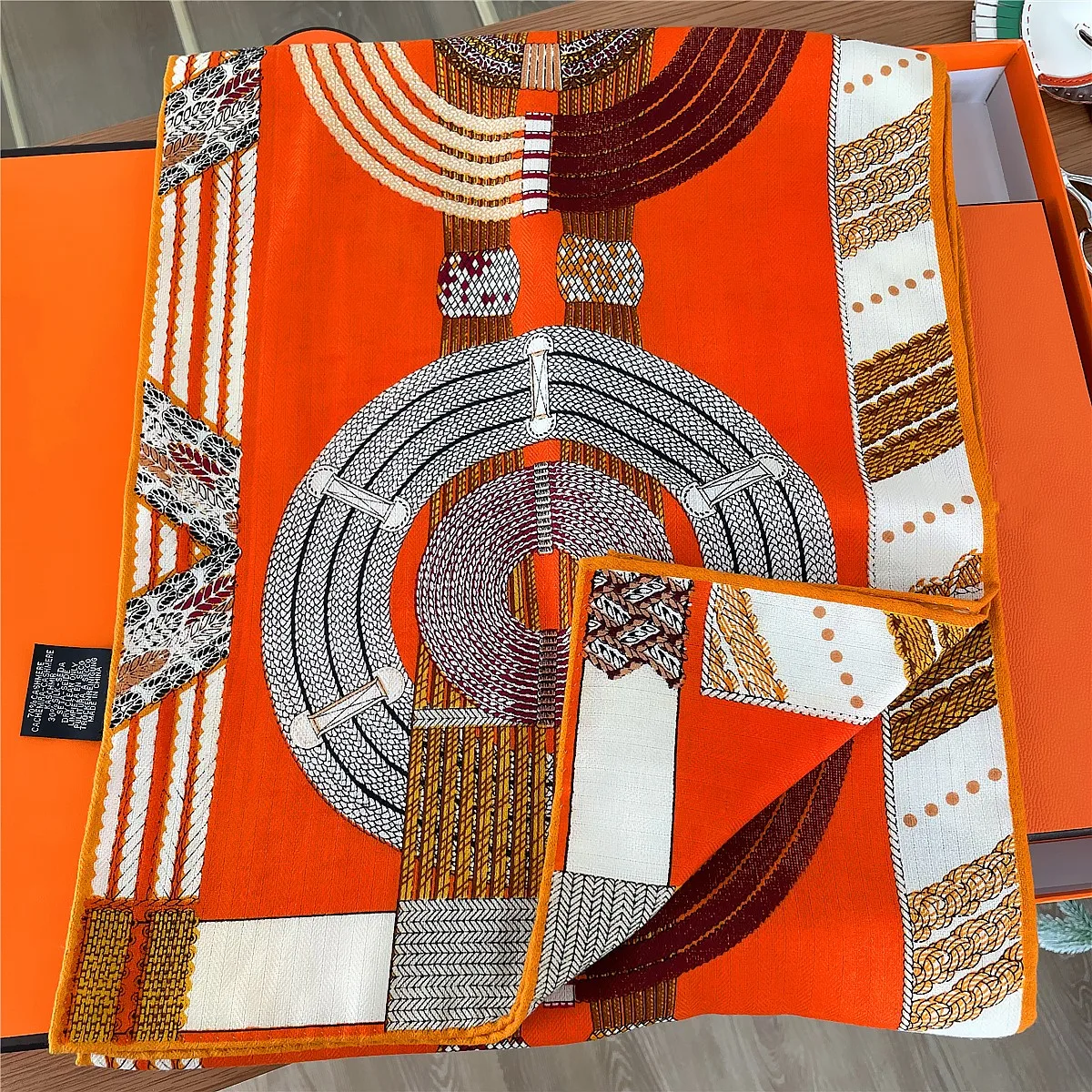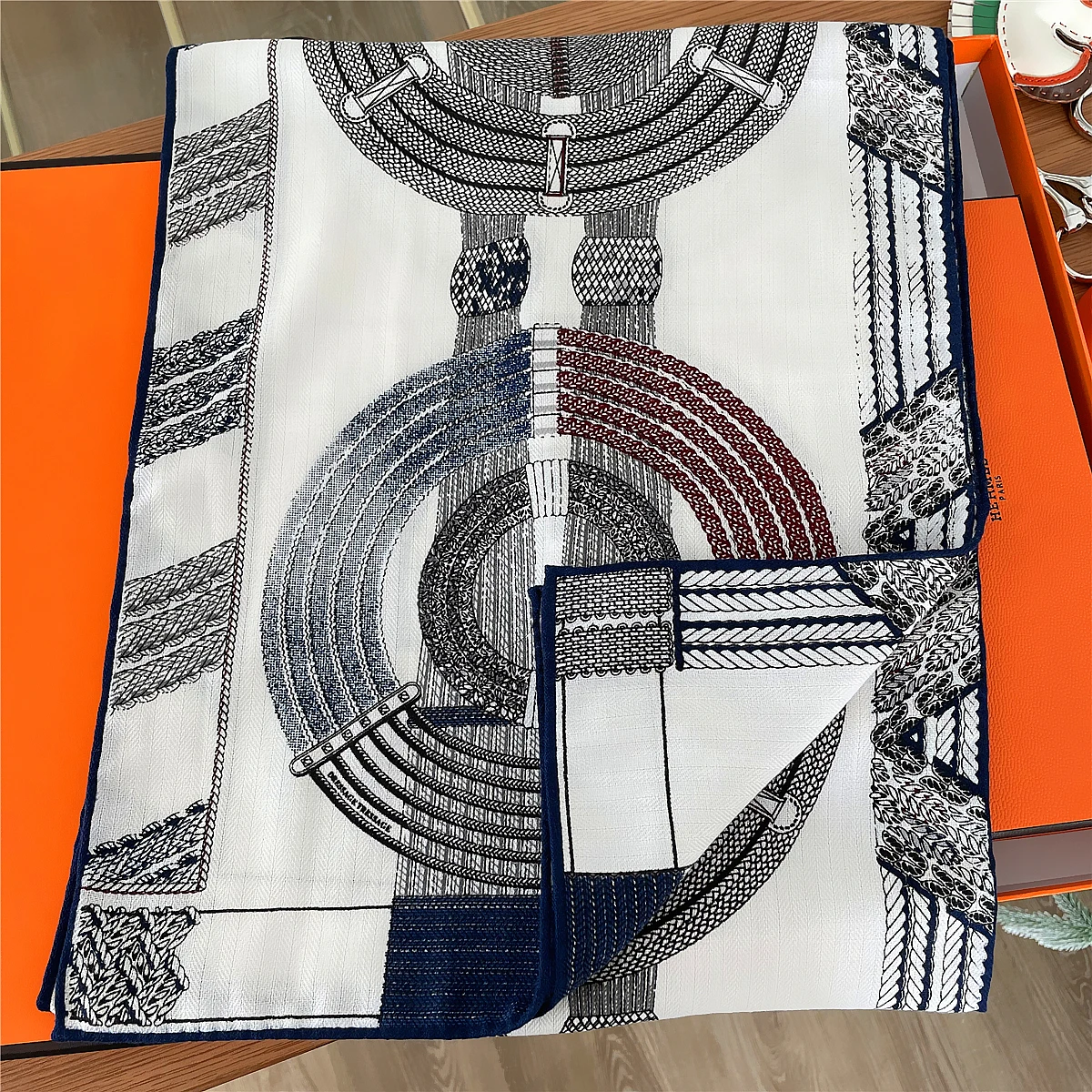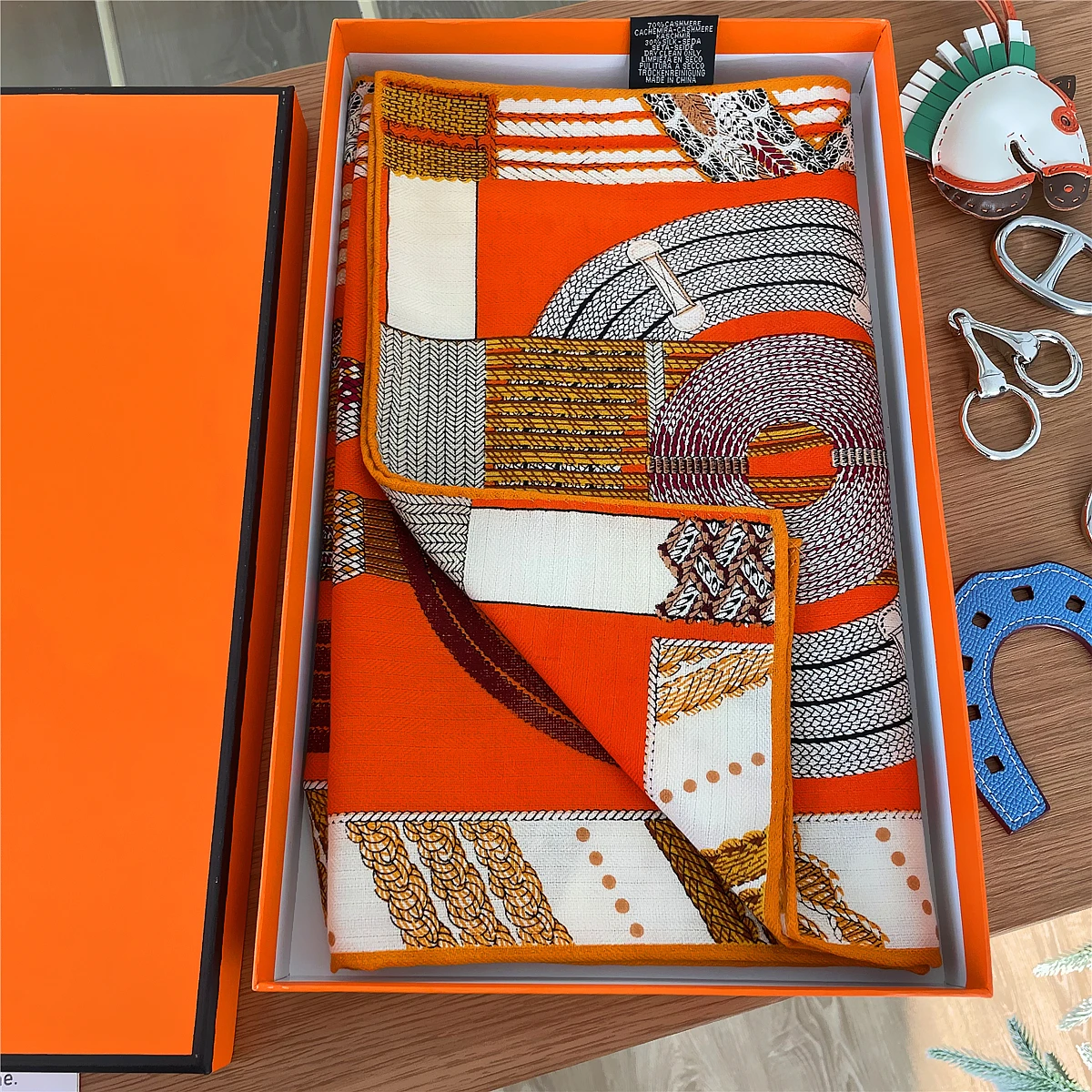 160x33CM Winter Thicken Silk Cashmere Scarf Women Hand Rolled Shawls H Letters Print Long Scarves Wrap Bandana Big Hijabs Female