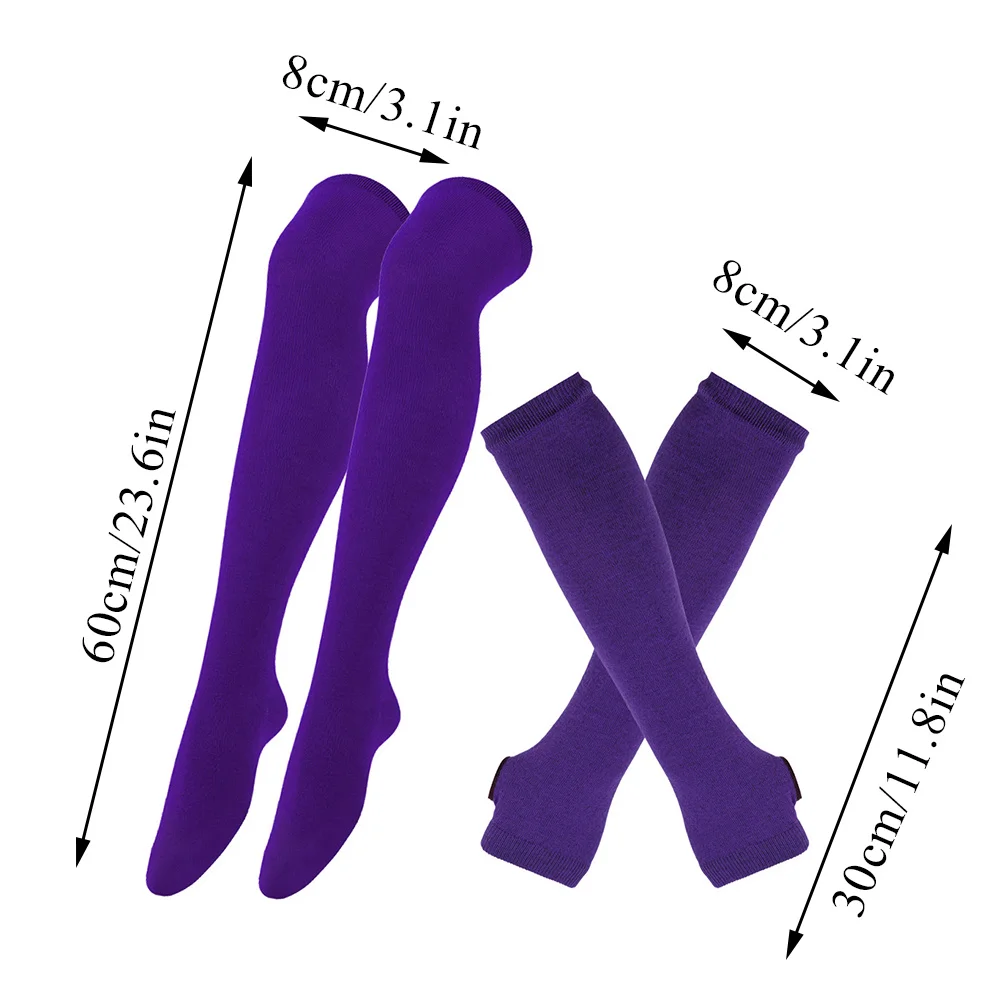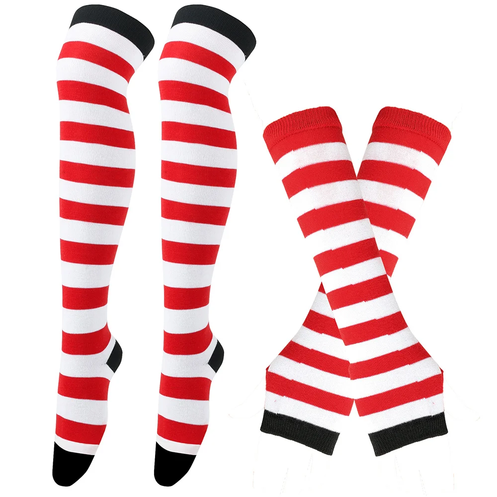 Stocking Striped Arm Sleeve Thumbhole Gloves Long Socks Knee High Socks Set Warm Knee Socks Casual Youth Cosplay Halloween