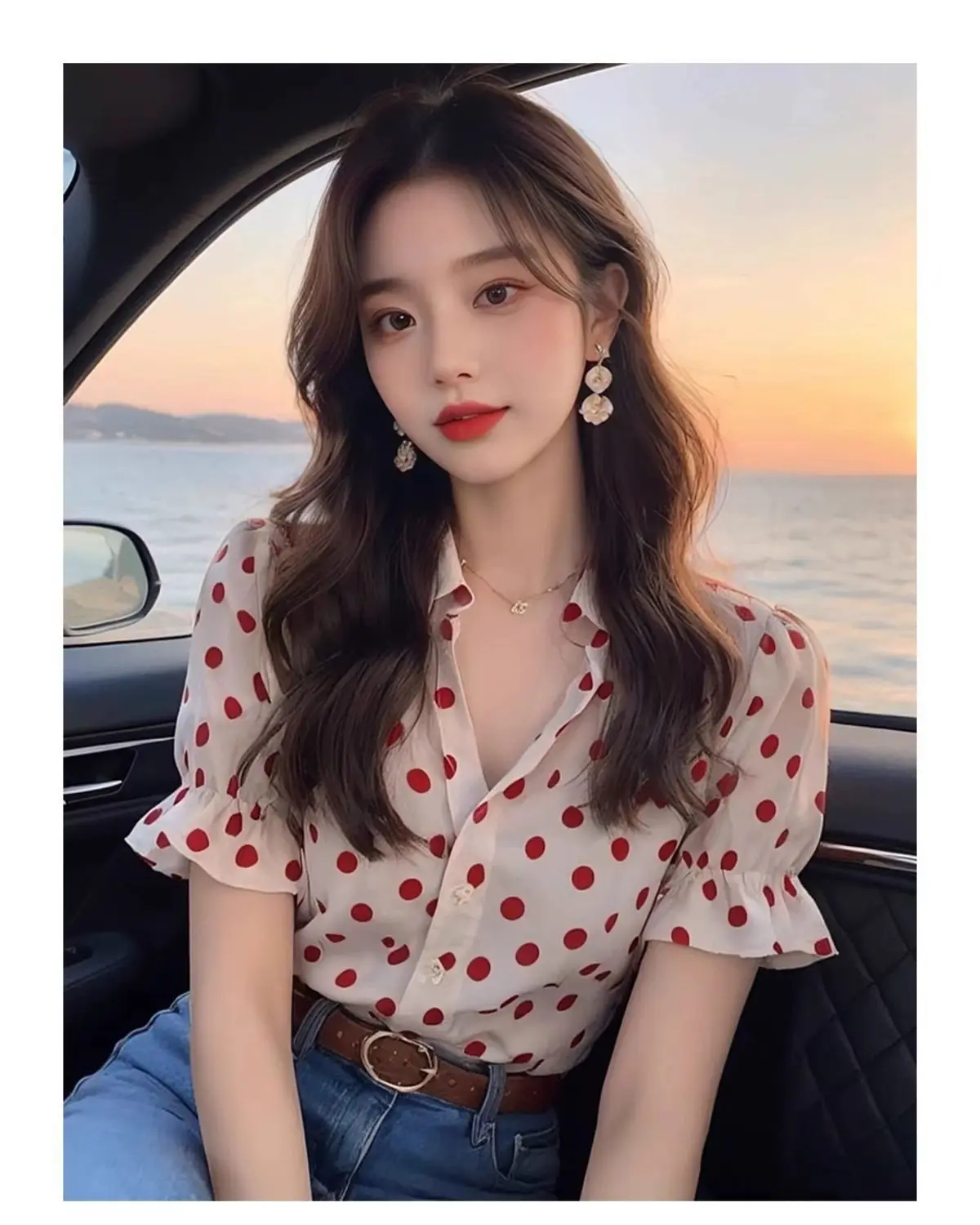 2024 Summer New Popular Beautiful High-end Elegant Women's Shirts French Sweet White Dotted Shirts for Women with Puff Sleeves