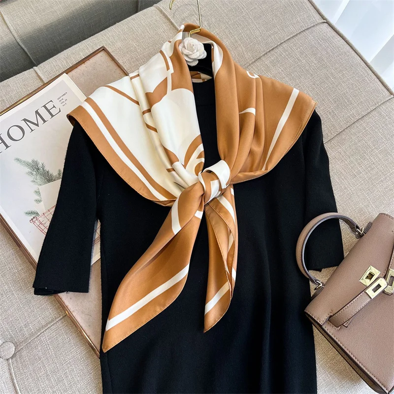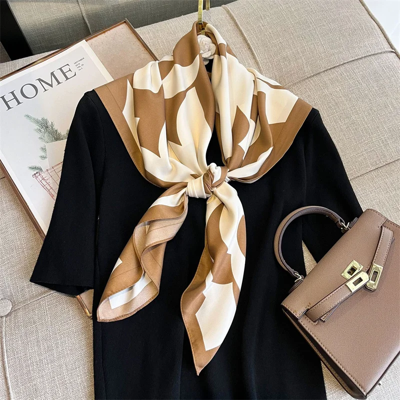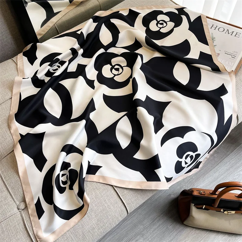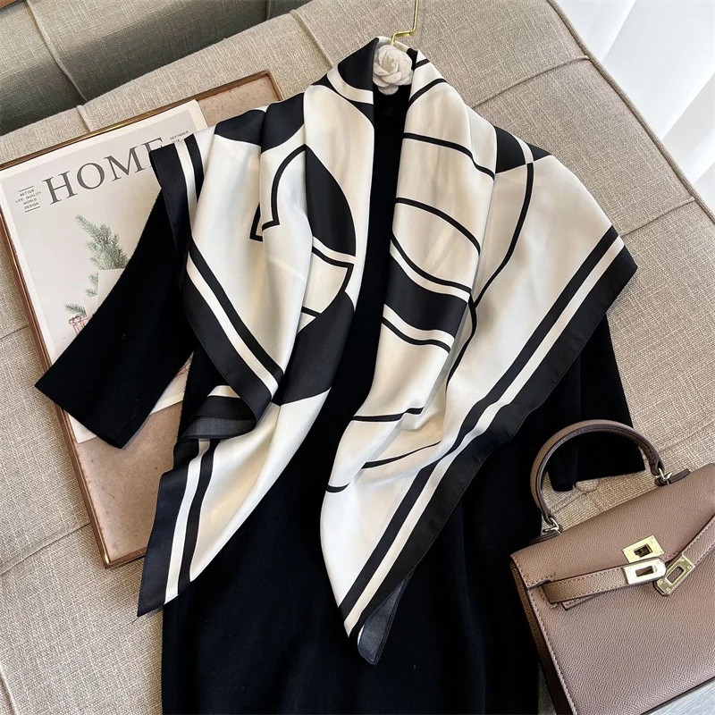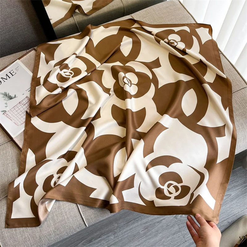 90cm Square Scarf Twill Silk Feeling Women Head Shawls and Wraps Luxury Hair C Letter Print Neck Scarves Hijab Bandana Pashmina
