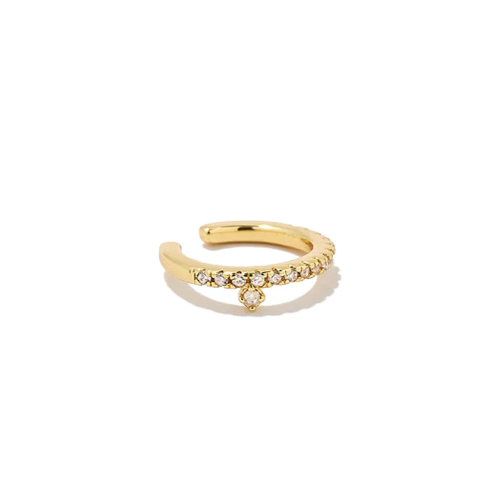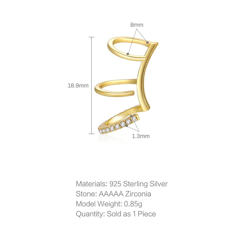 Aide 925 Sterling Silver White Zircons Pave Chain Tassel Ear Cuffs For Women Non Pierced Oval Crystal Crown Shape Clip Earrings