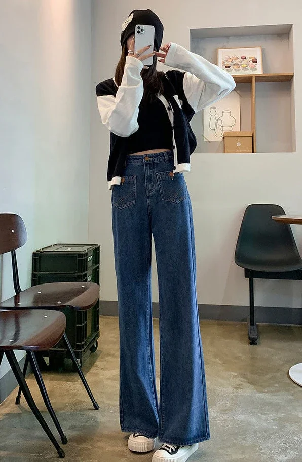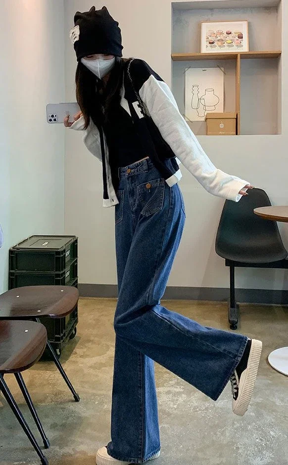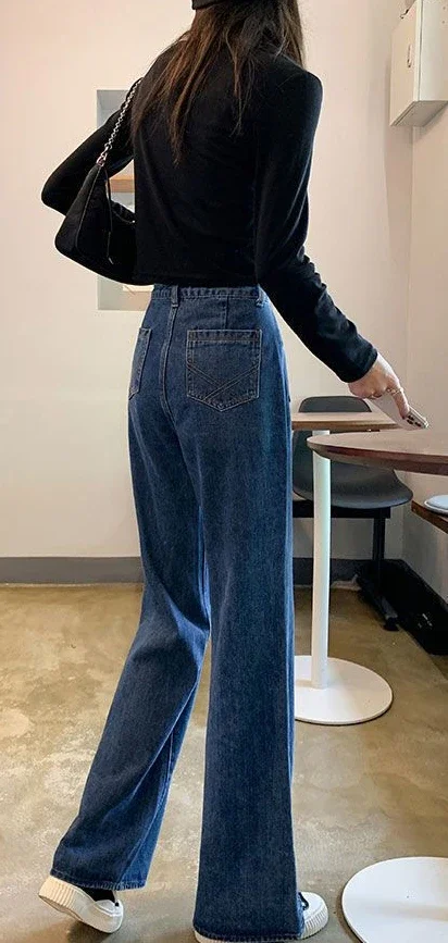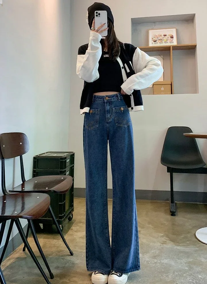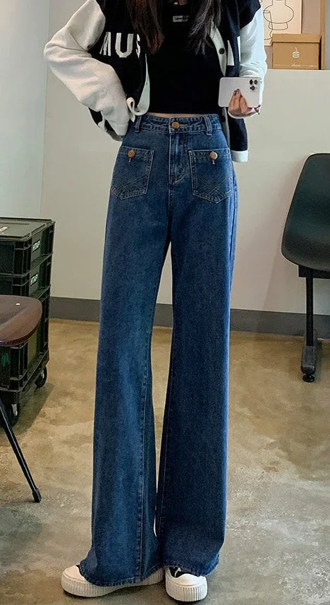 Blue Women's Jeans High Waist Shot Trousers Straight Leg Pants for Woman Cheap Harajuku Fashion Basics Luxury Designer Summer R