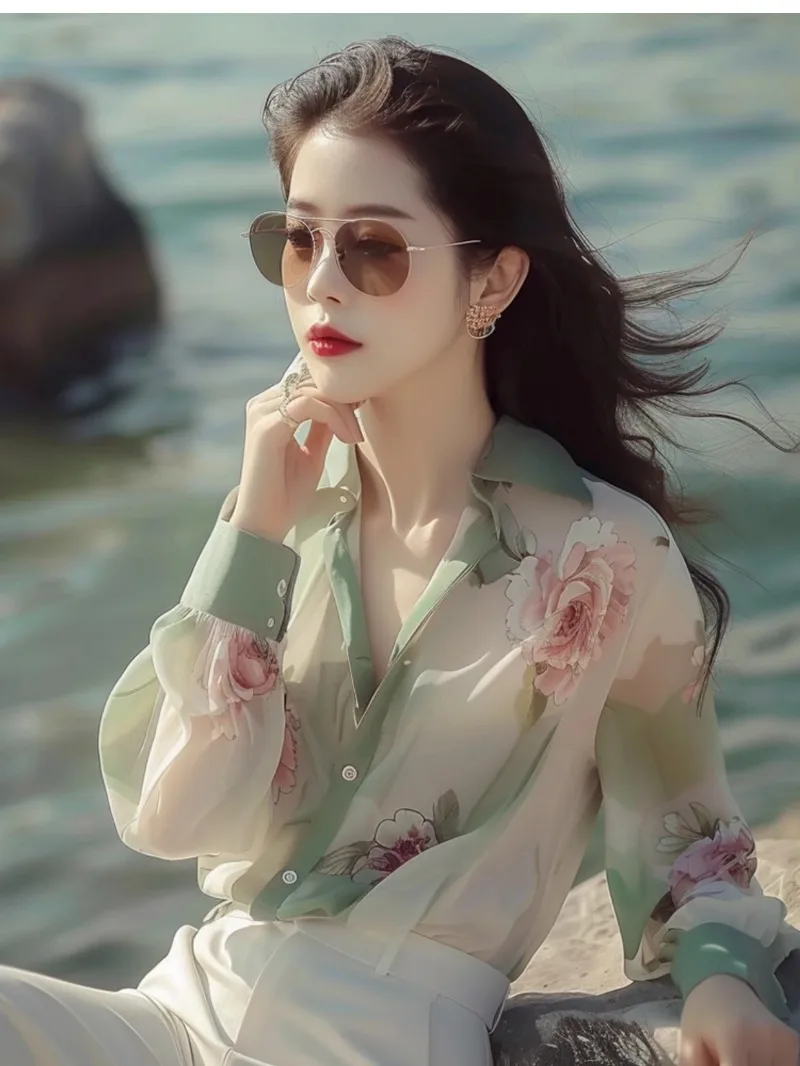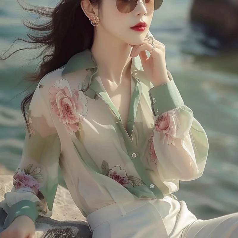 Chiffon Women's Shirts Printed Vintage Blouses Spring/Summer Fashion Clothing Loose Long Sleeves Women Tops