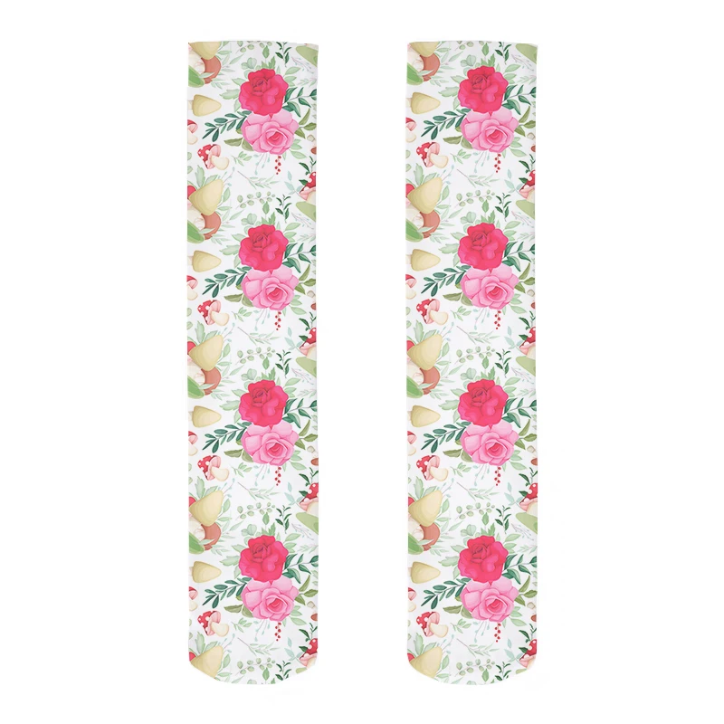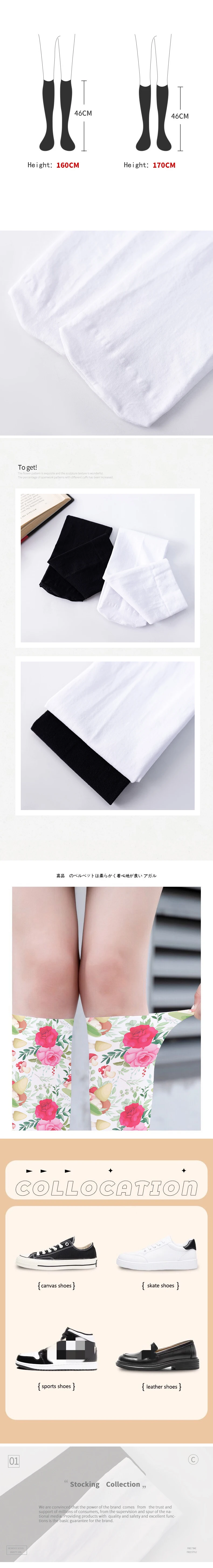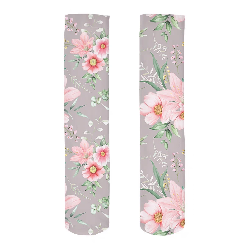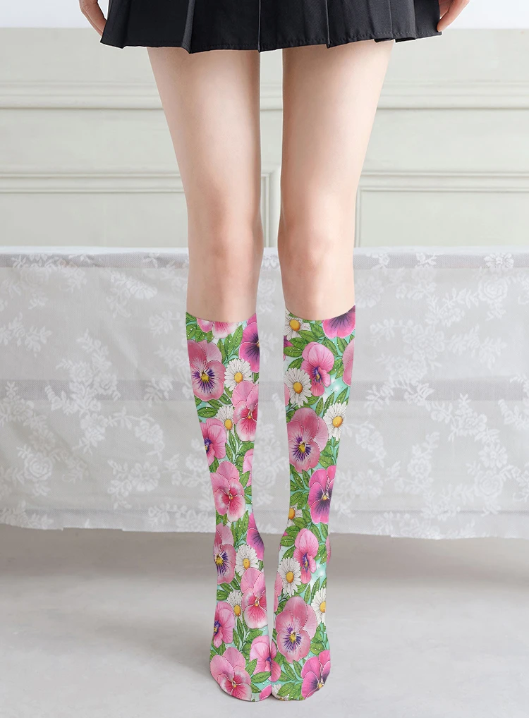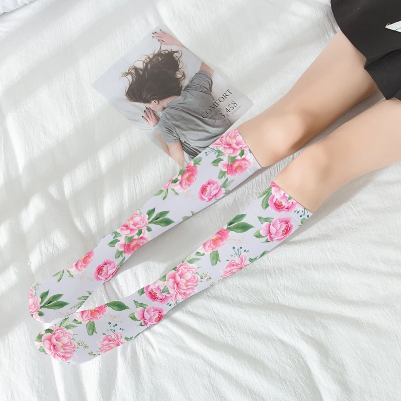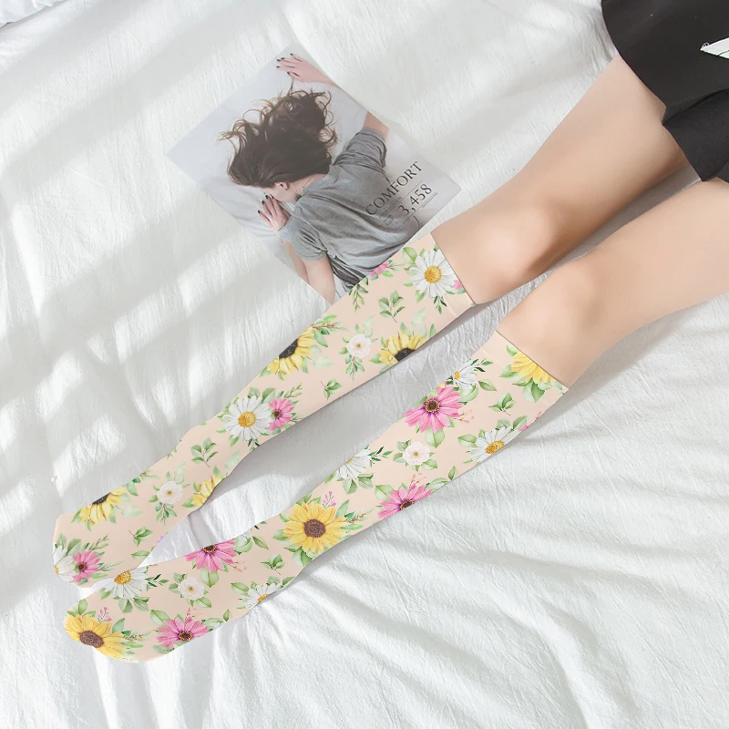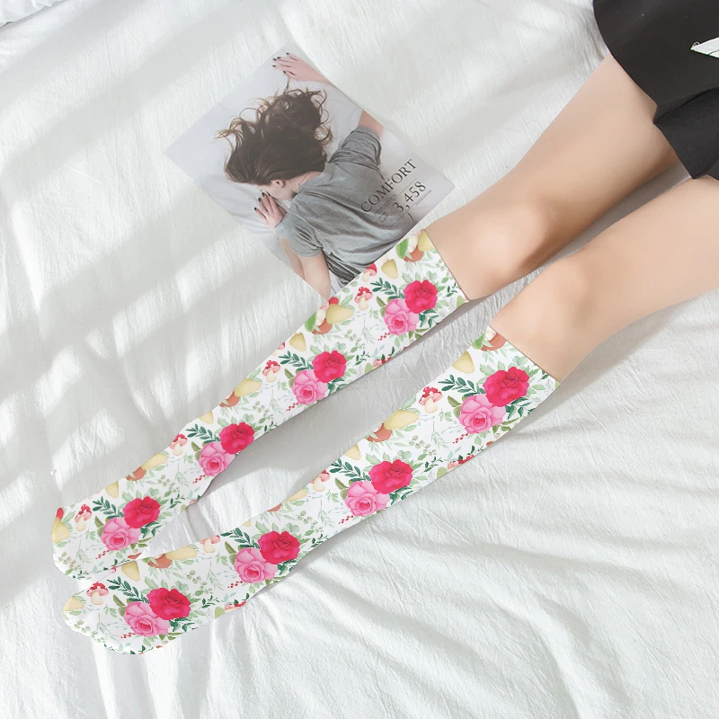 Fashion Trend Flower Print Harajuku Knee Socks Summer Rose Small Daisy Calf Socks Japanese Wild High Tube Sweet Stockings Women