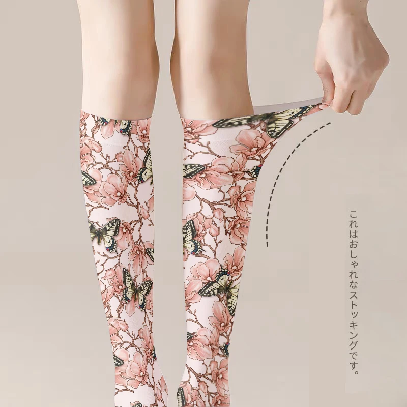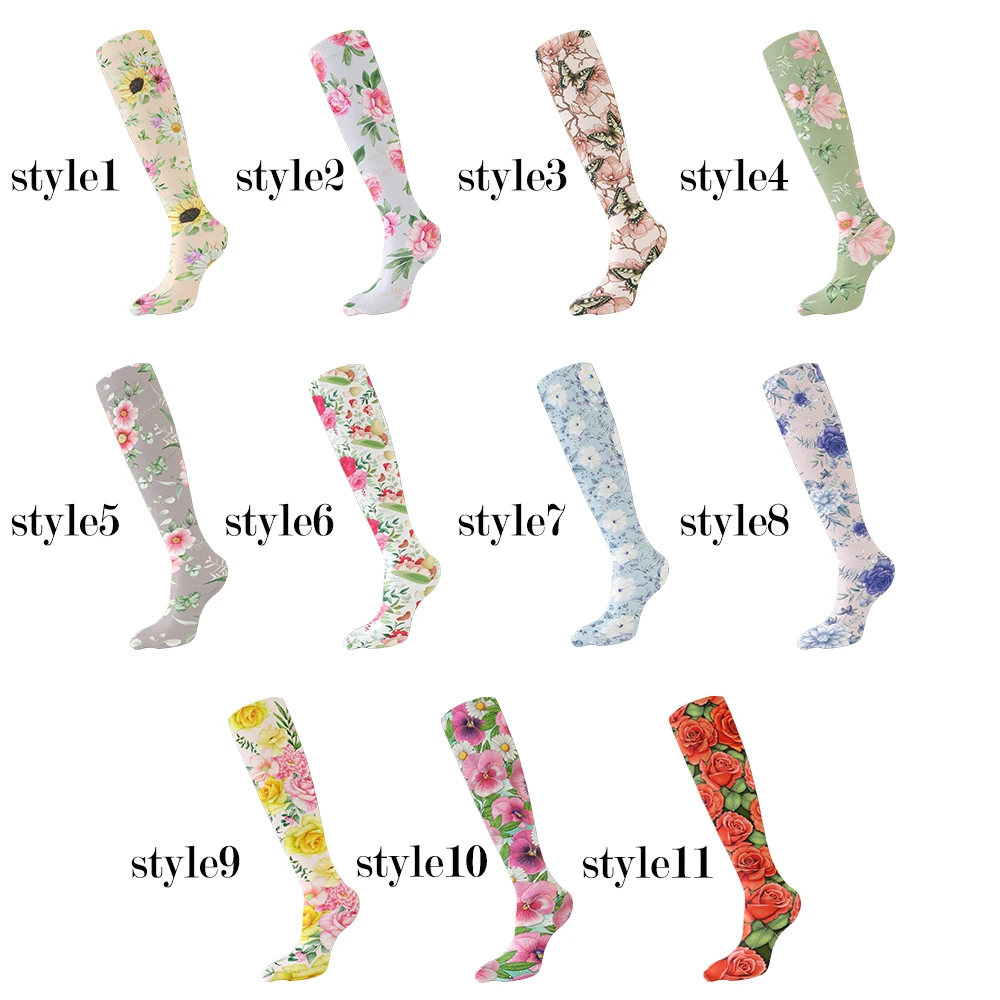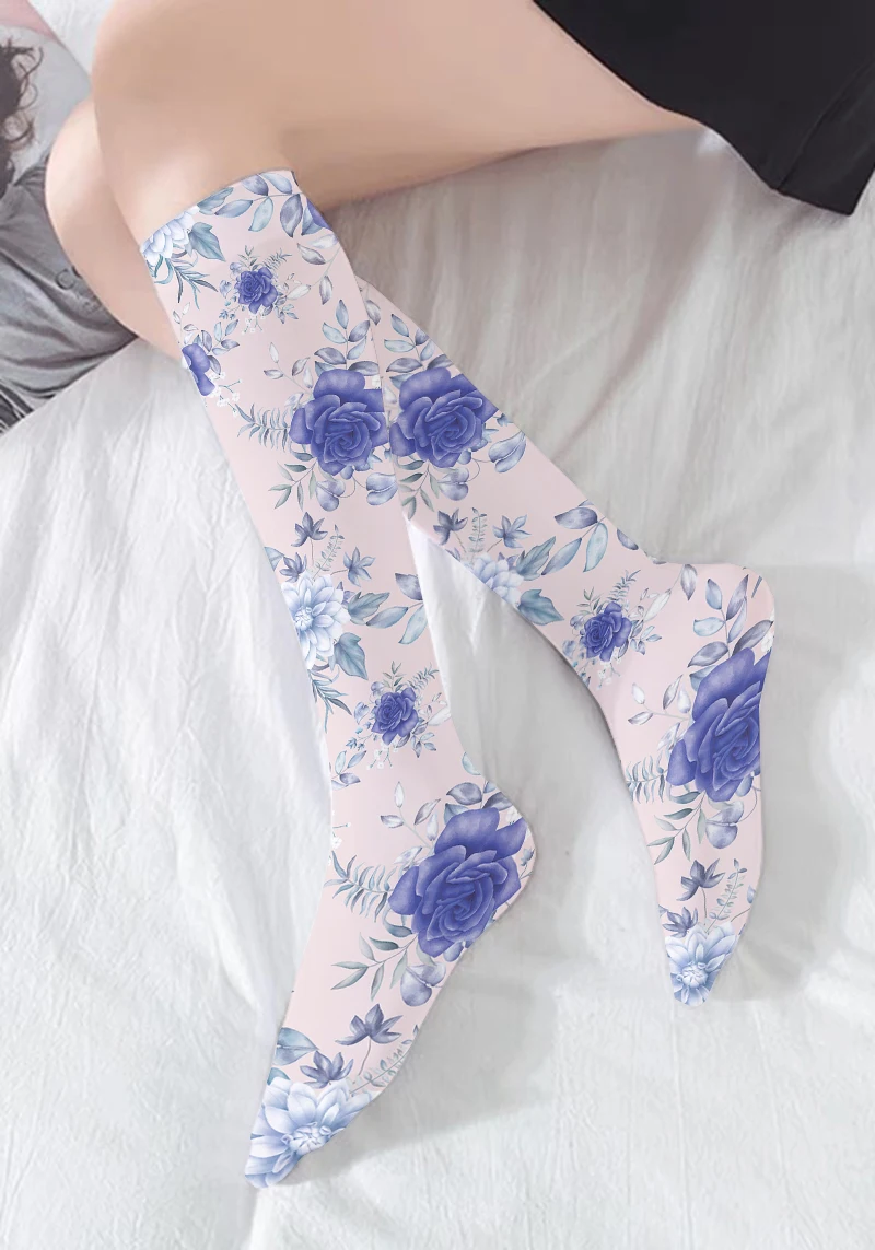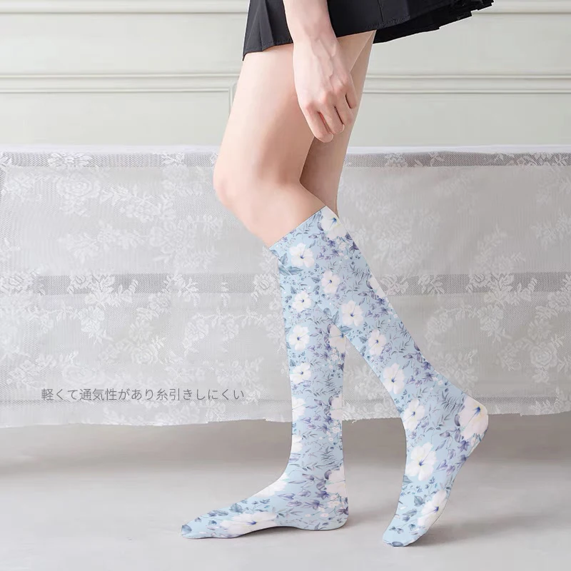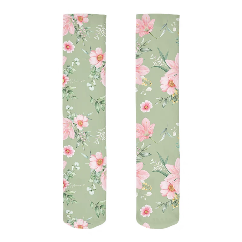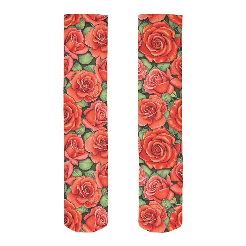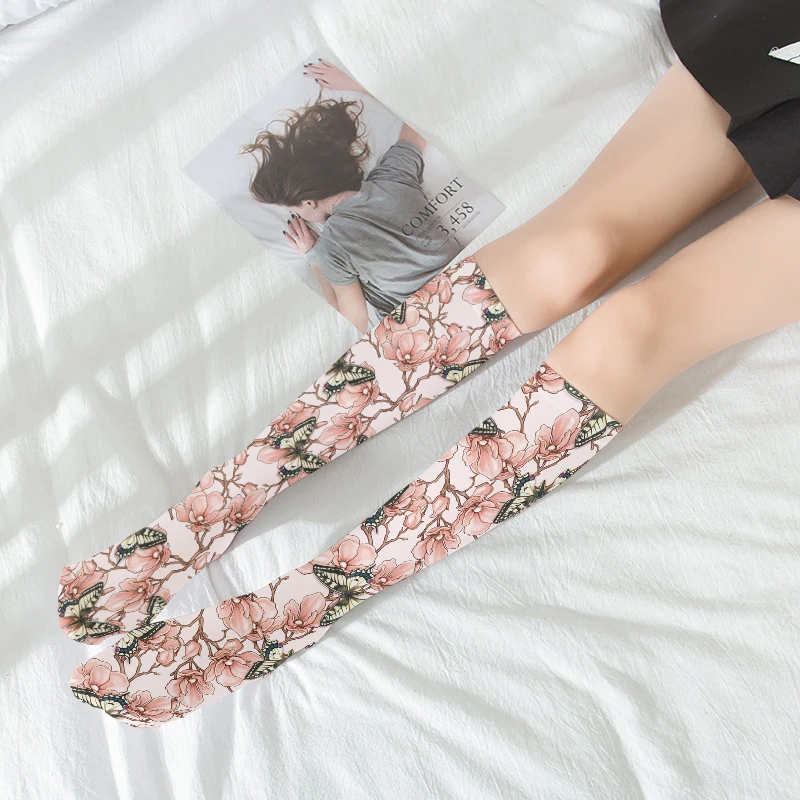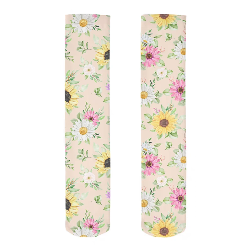 Fashion Trend Flower Print Harajuku Knee Socks Summer Rose Small Daisy Calf Socks Japanese Wild High Tube Sweet Stockings Women