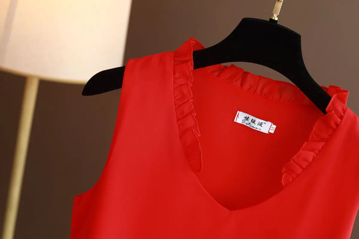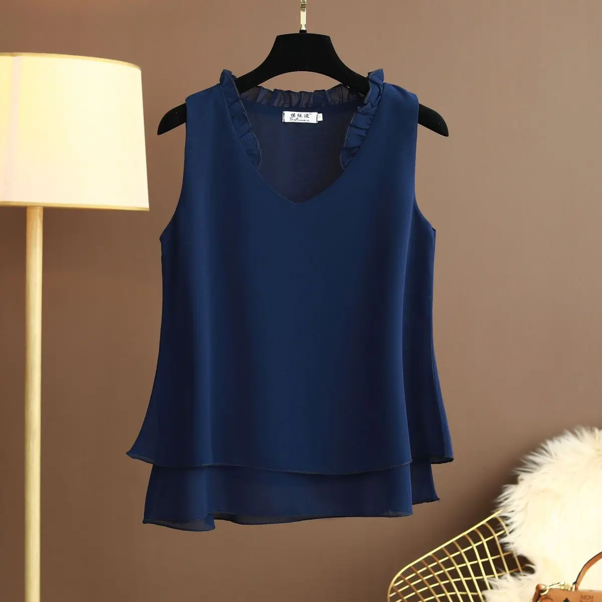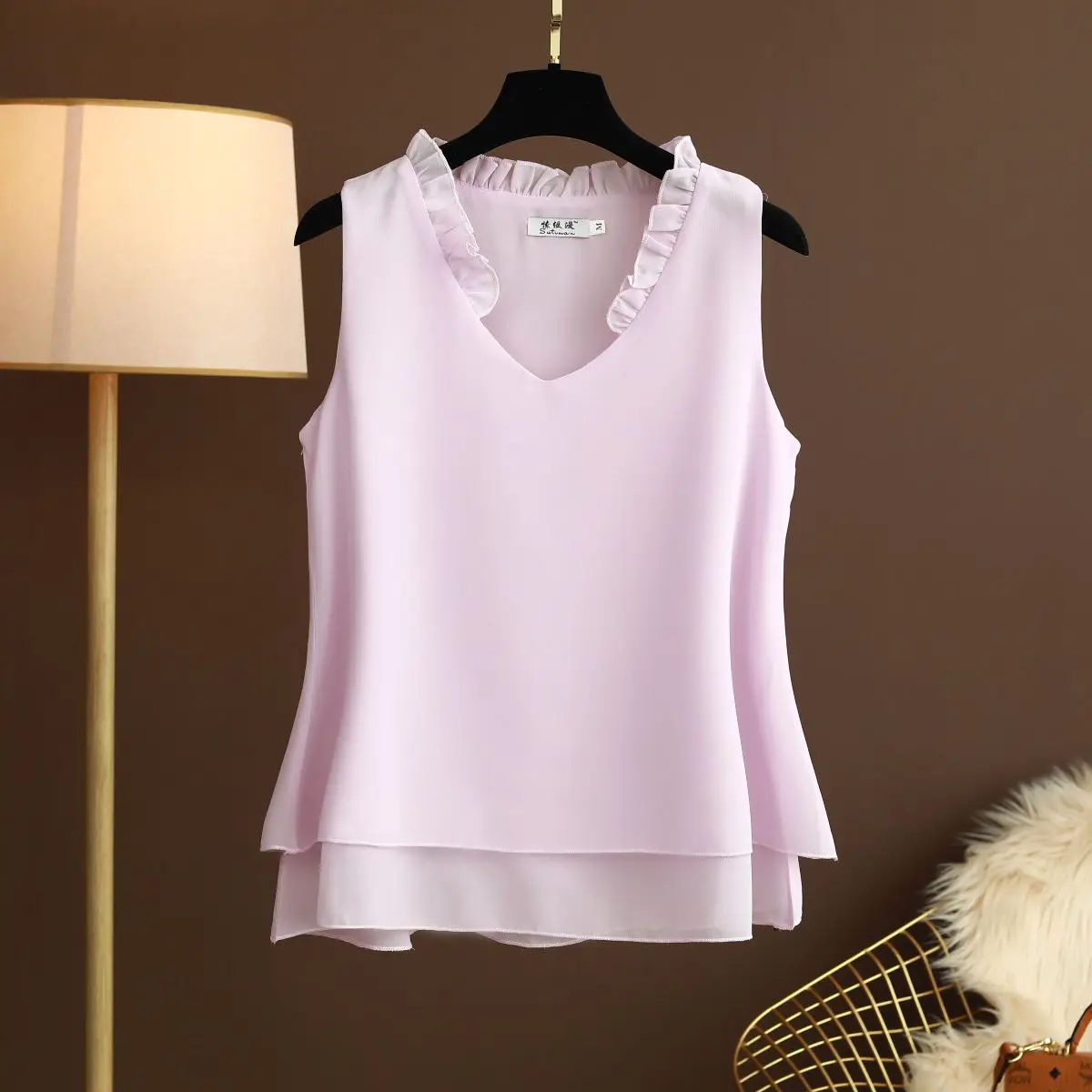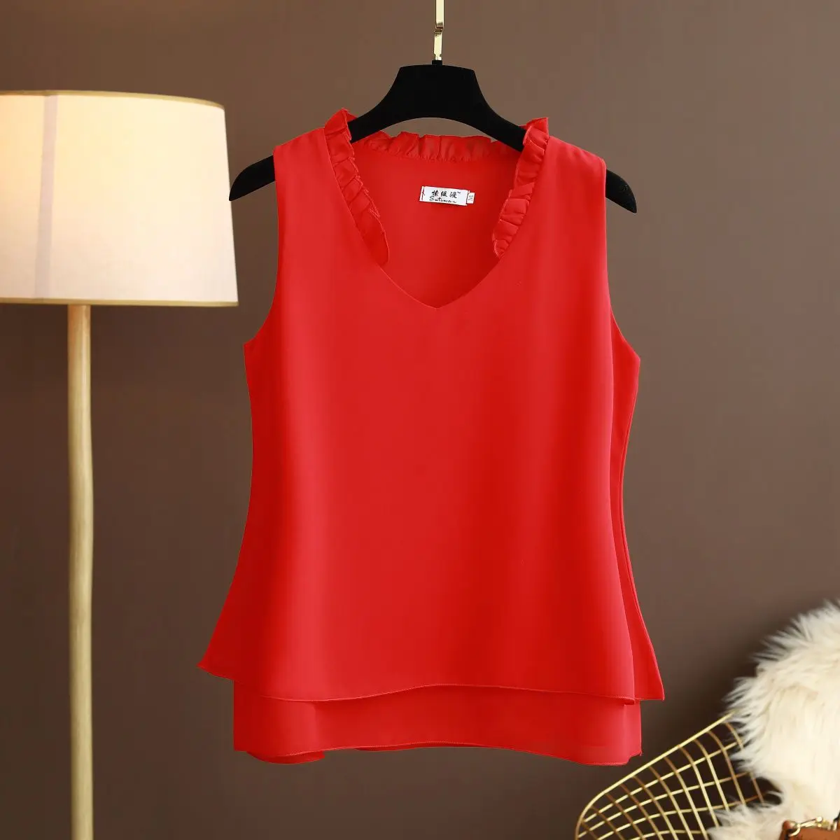 New Summer Loose V-Neck Sleeveless Chiffon Shirts Women's Tops Large Size Women's Shirts Women's Clothes Top Blusas De Mujer