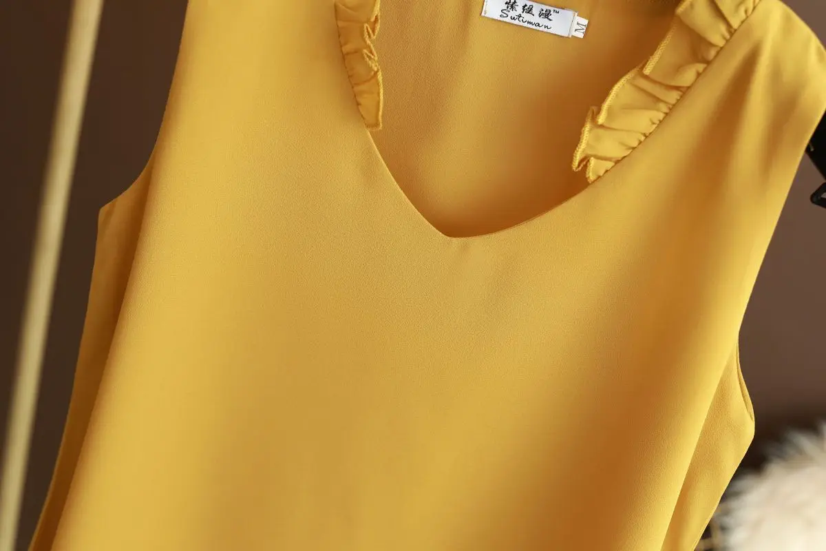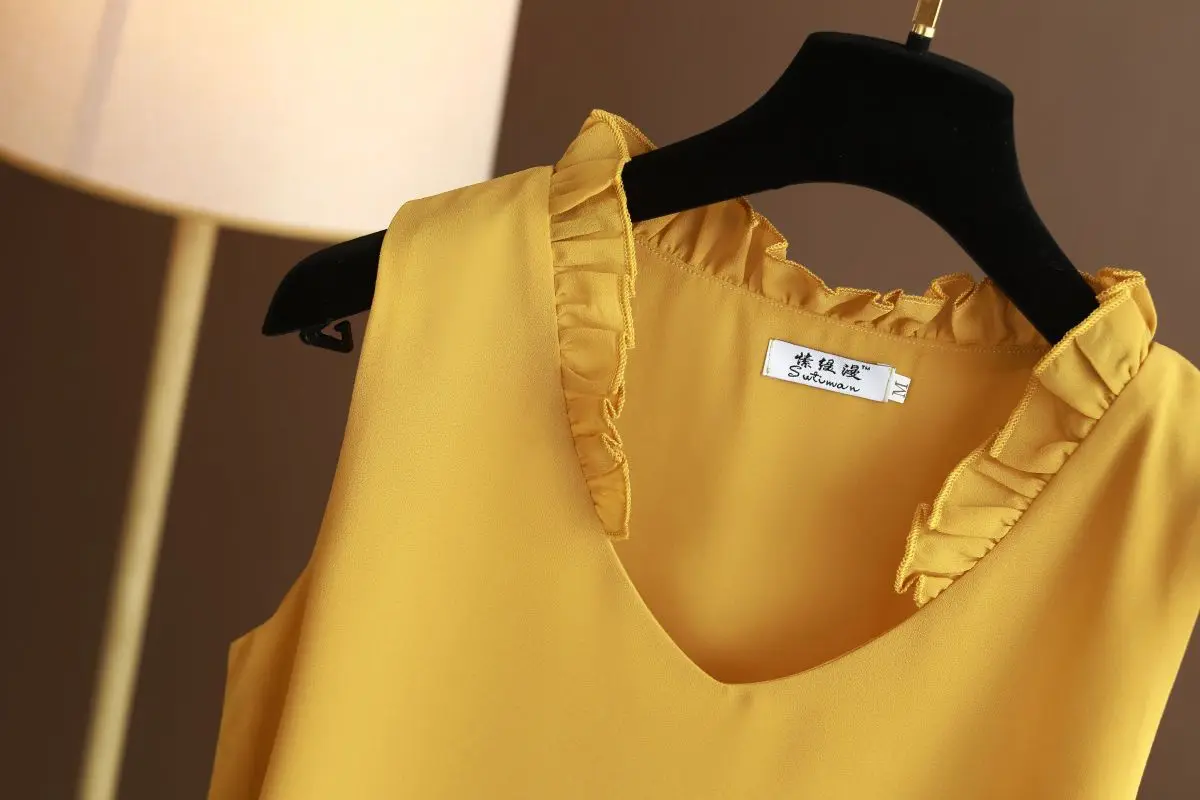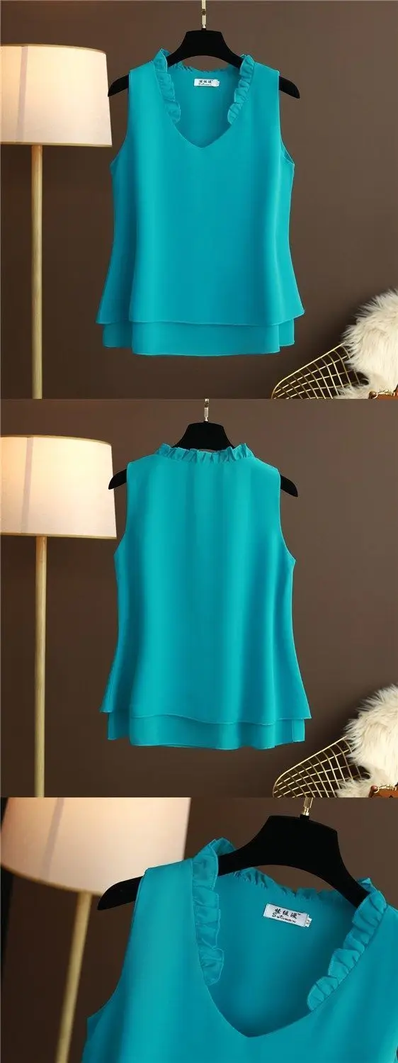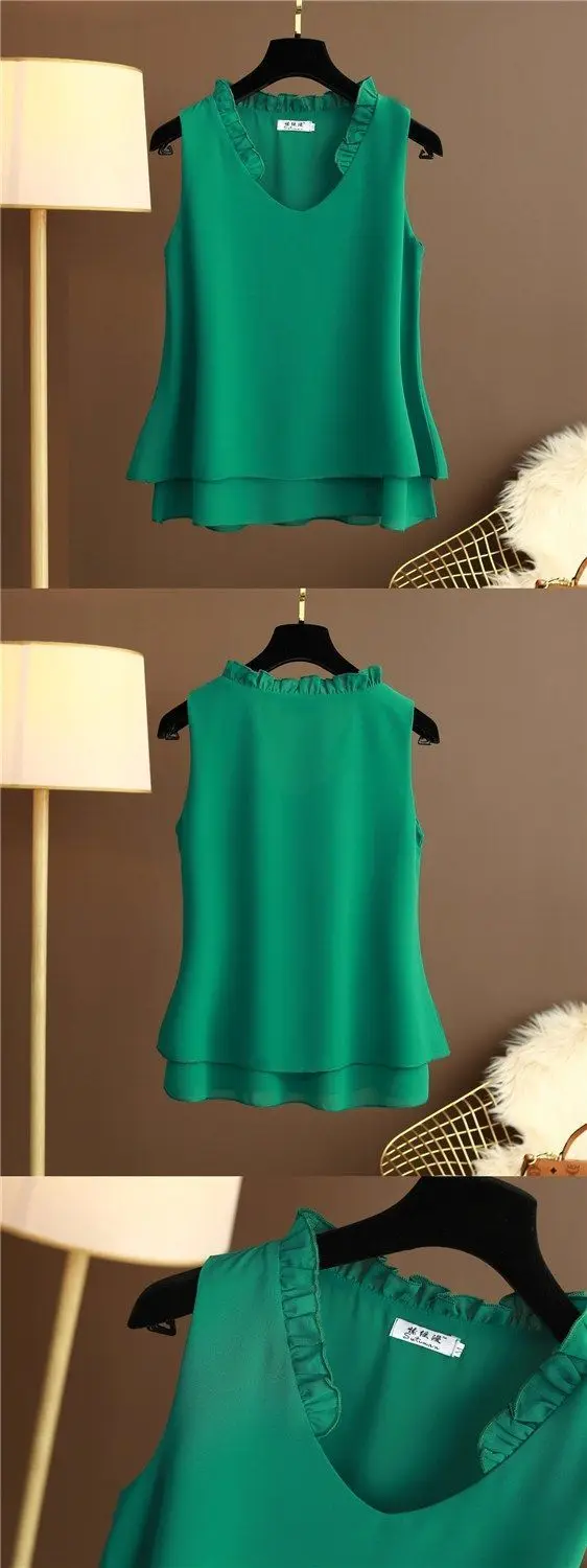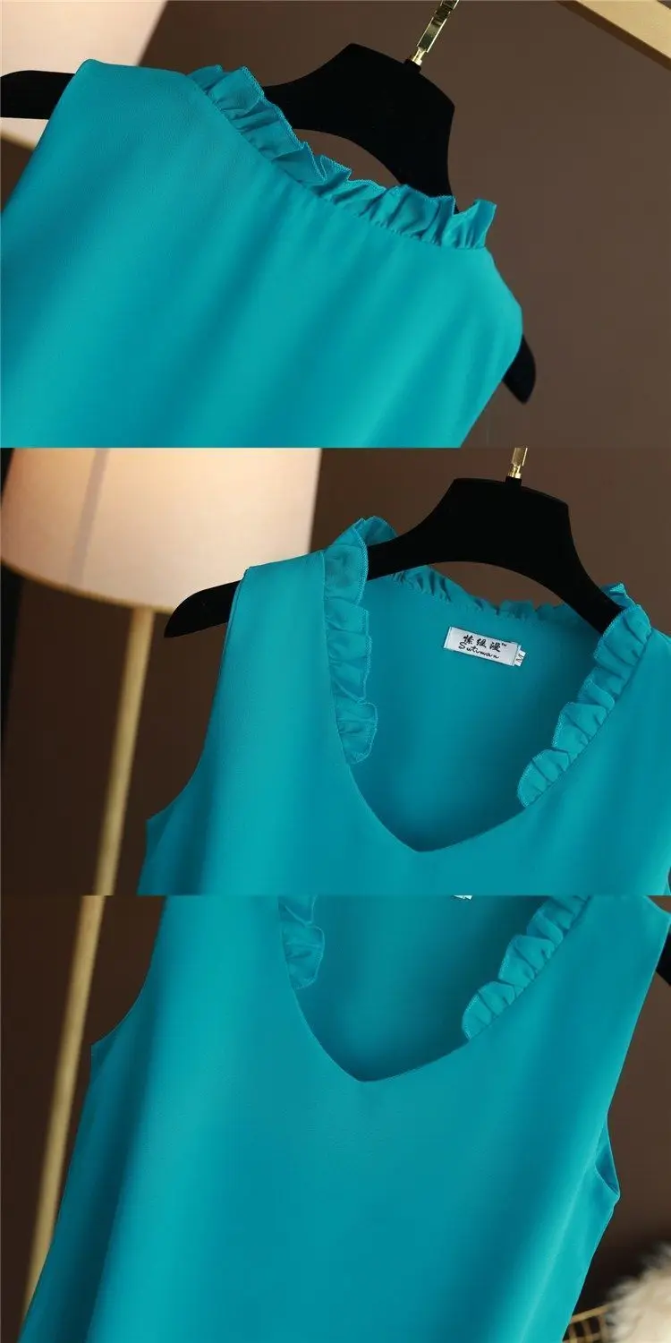 New Summer Loose V-Neck Sleeveless Chiffon Shirts Women's Tops Large Size Women's Shirts Women's Clothes Top Blusas De Mujer