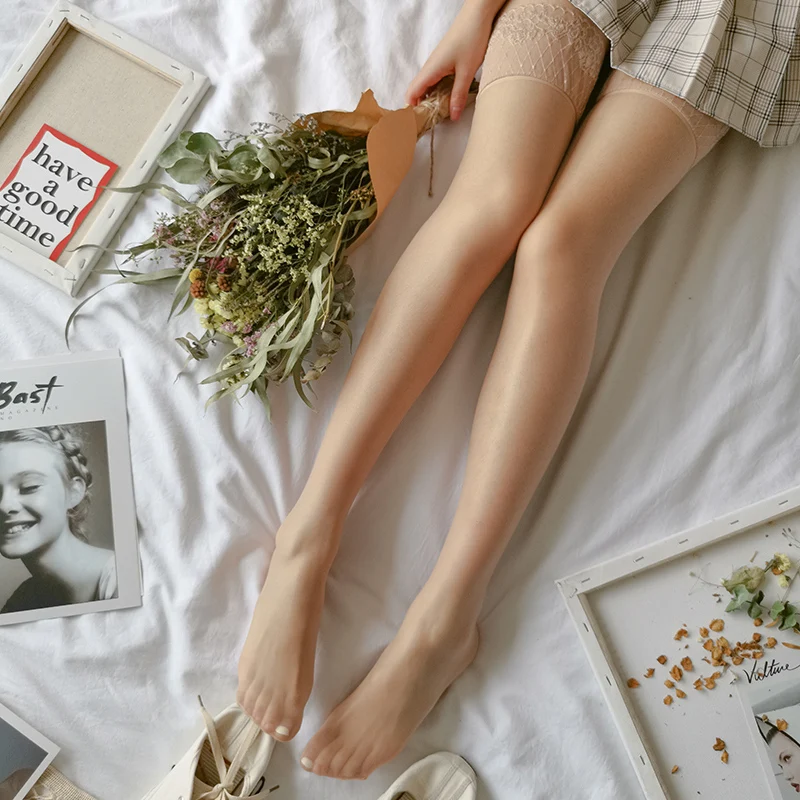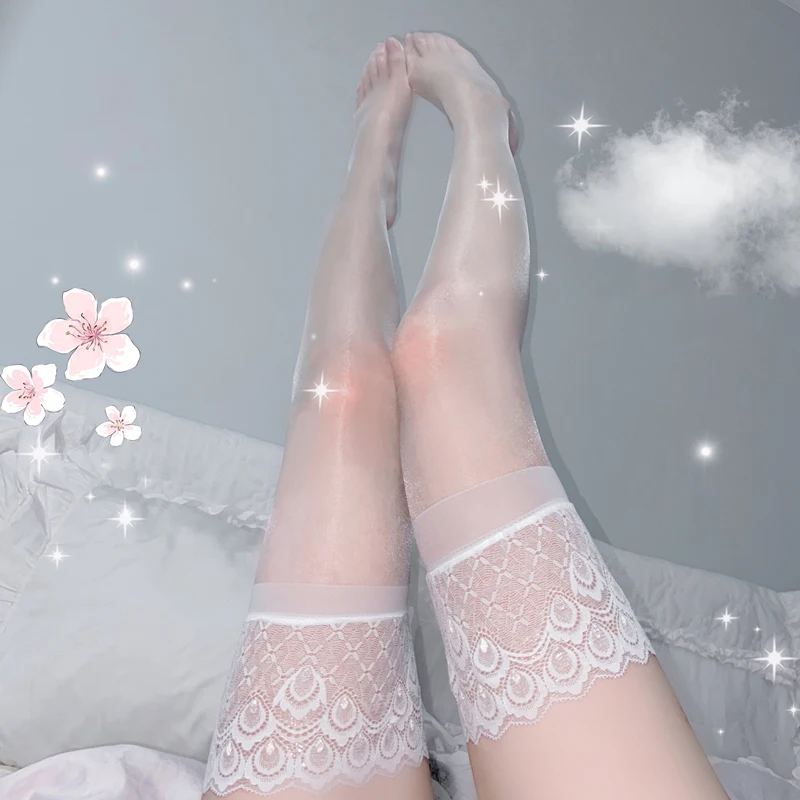 Oil Shine Sexy Stockings Women Lace Top Thigh High Stockings Ladies Silicone Stay Up Over Knee Long Medias
