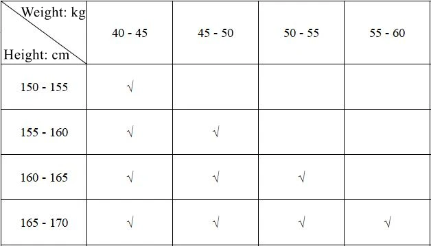 Size: One Size Fits Height: 150 - 170 cm, Weight: 40 - 60 kg, Thigh: 36 - 48 cm.