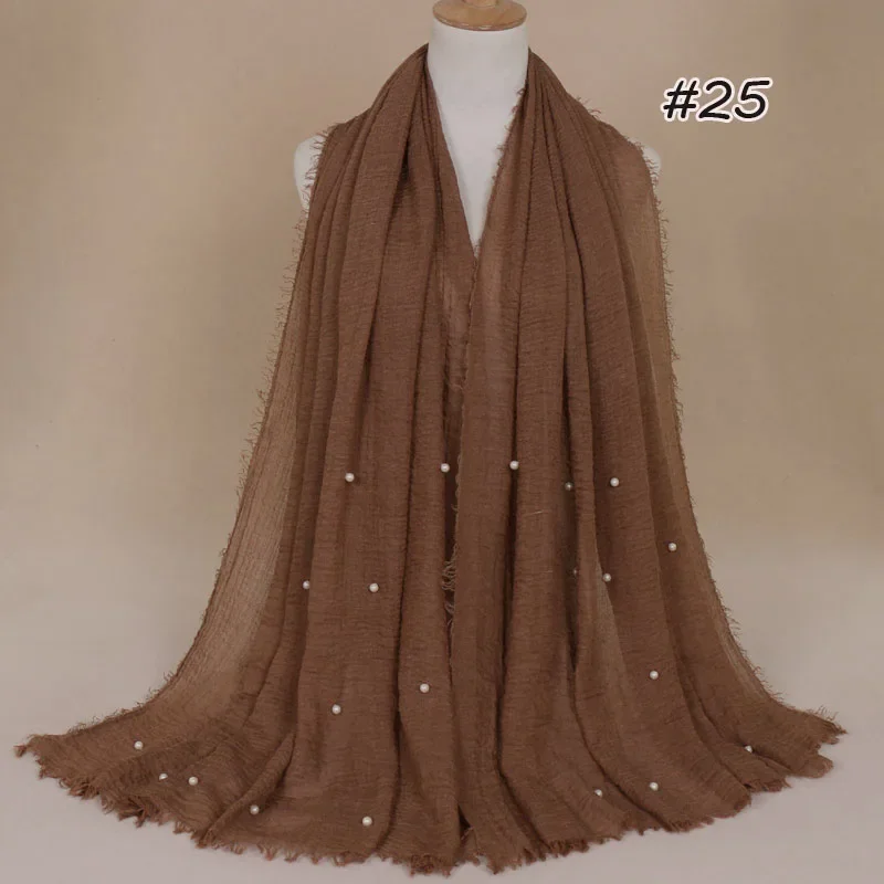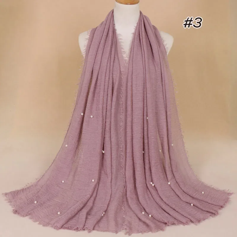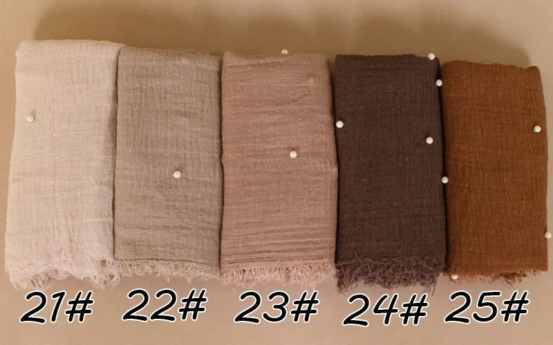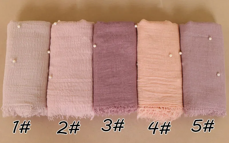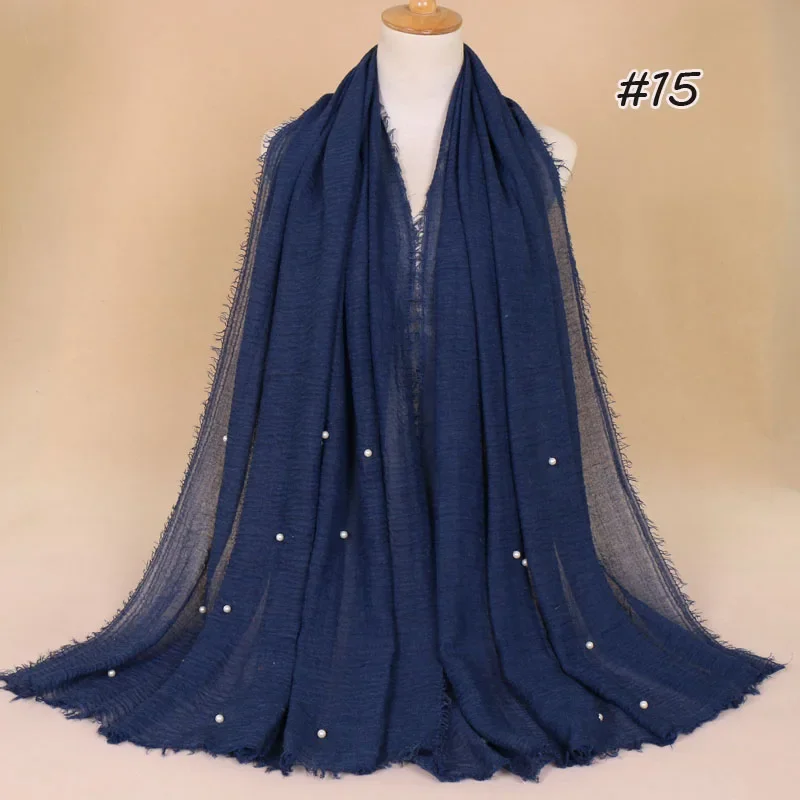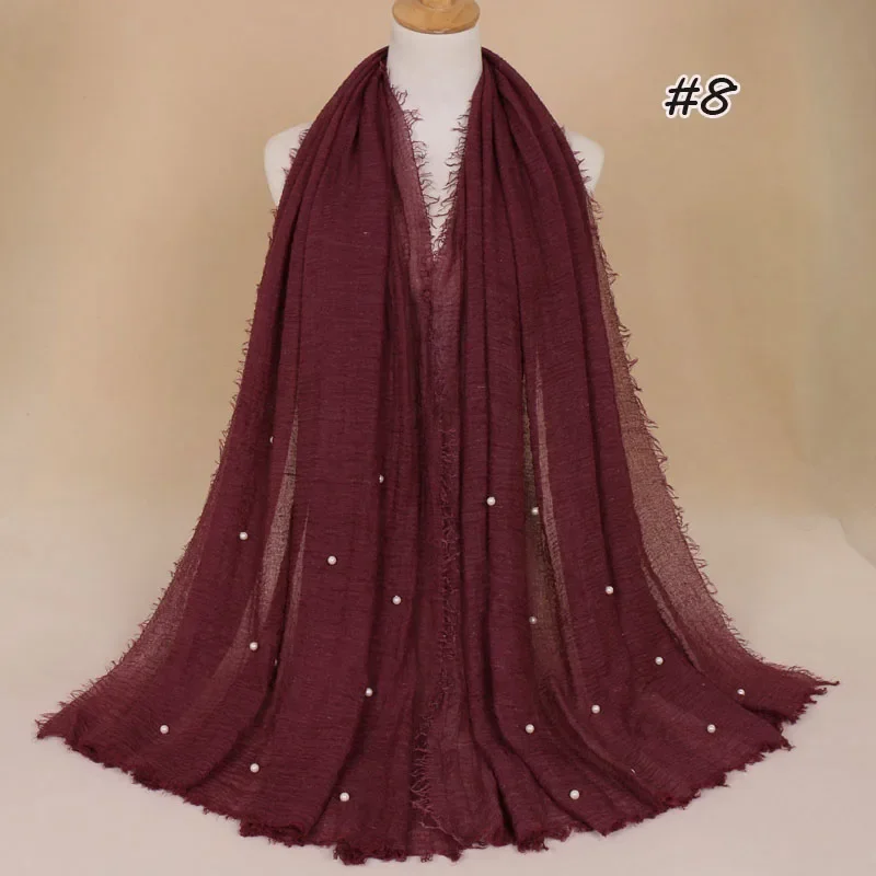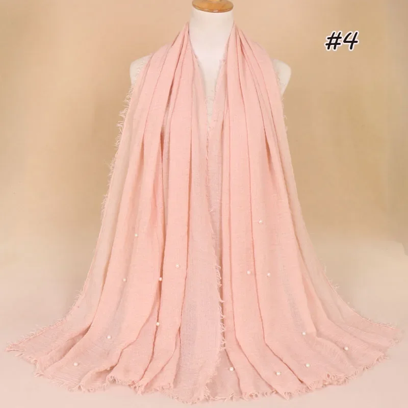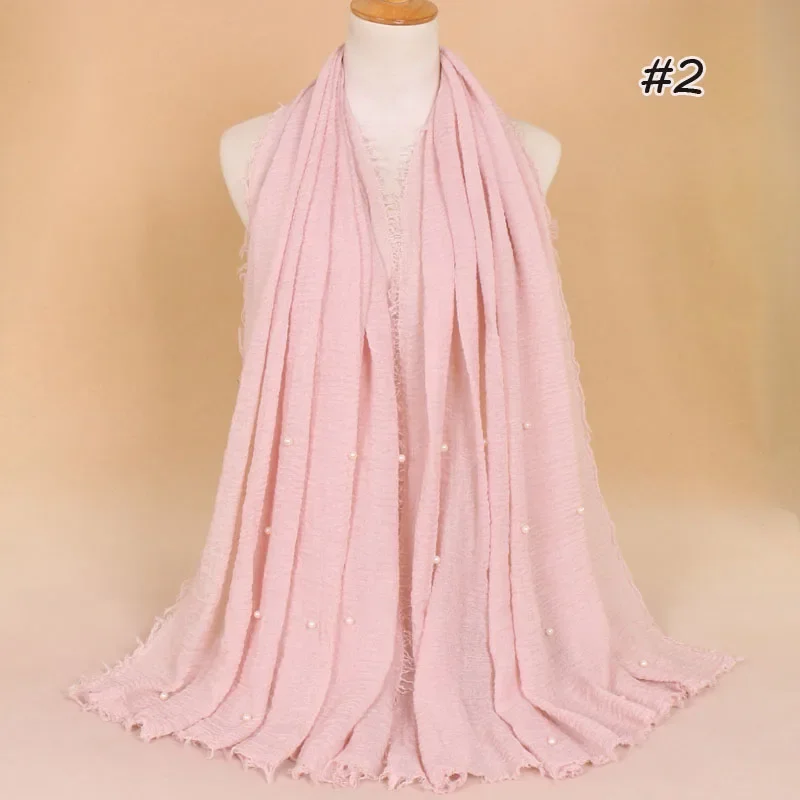 Plain Crinkled Cotton Muslim Hijab Scarf Women Ladies Scarfs Shawls Tassel Head Wrap Pearl Beads Head Scarves Soft Muffler Stole