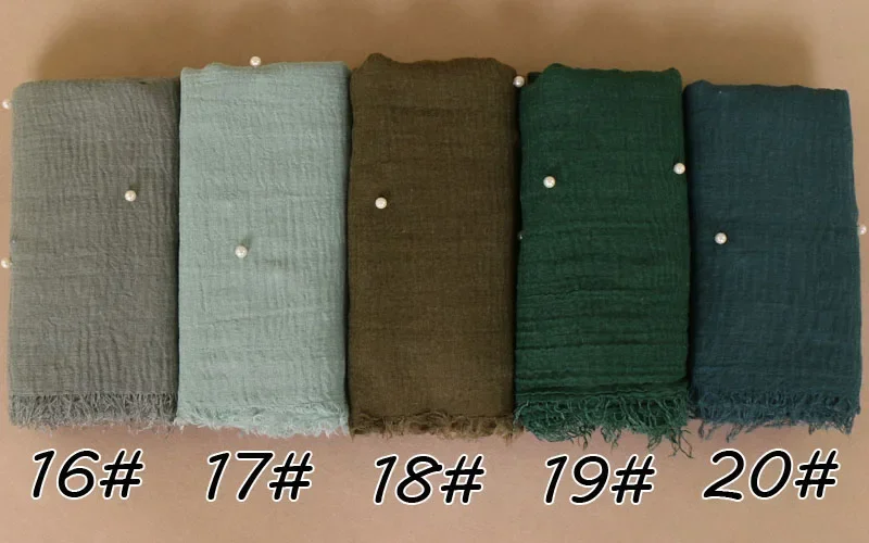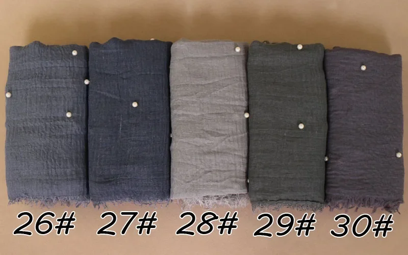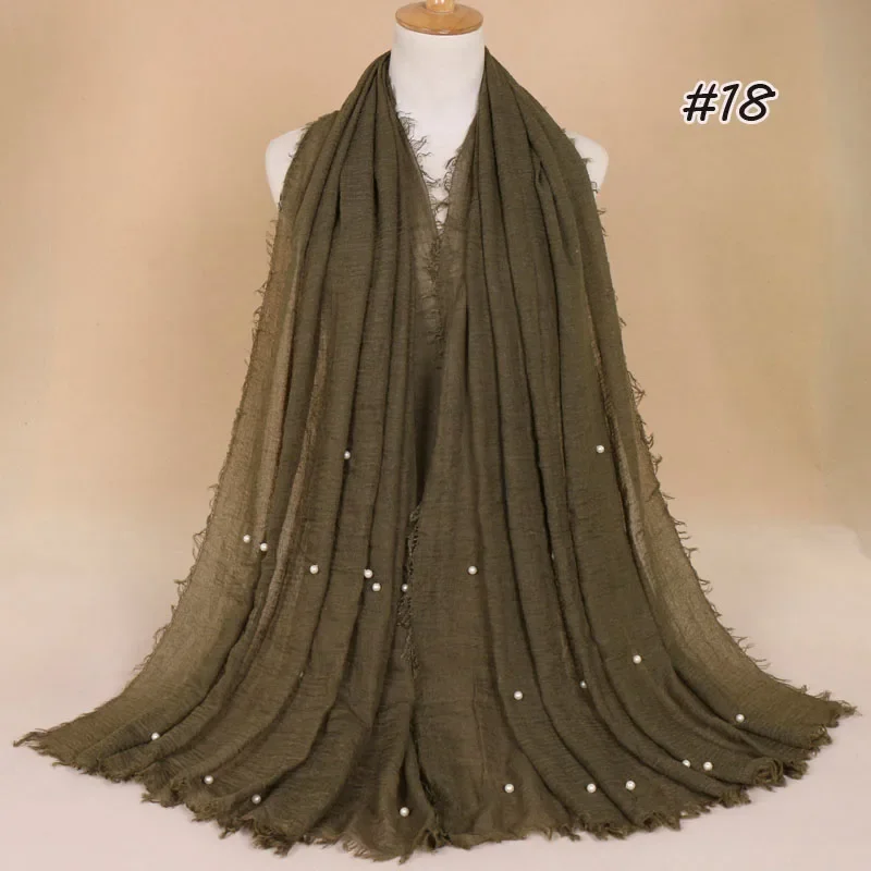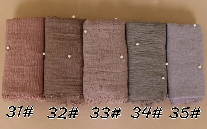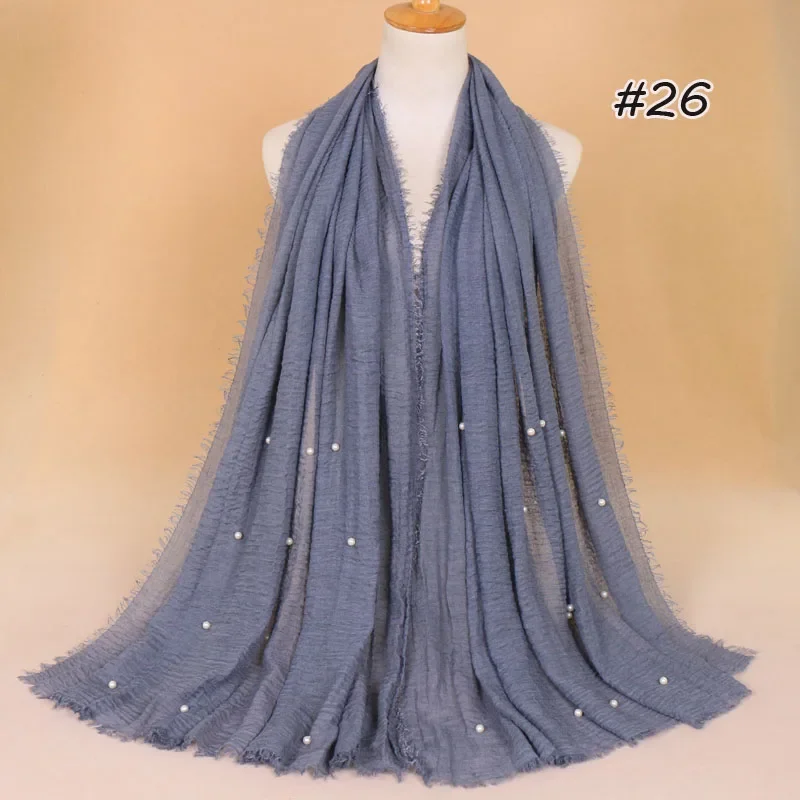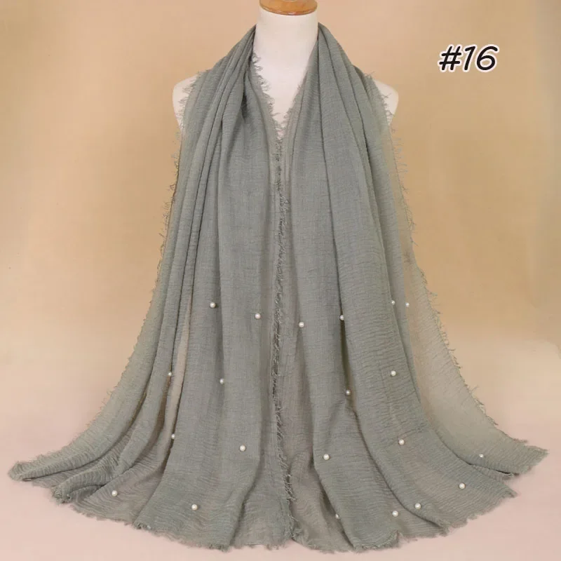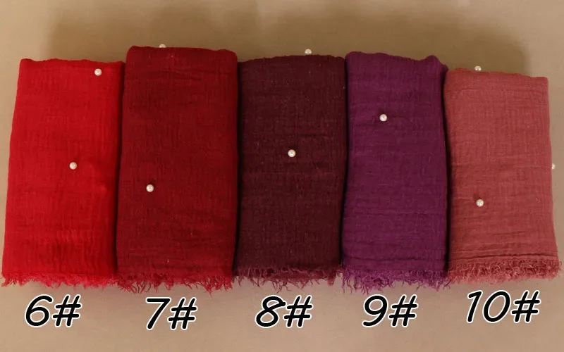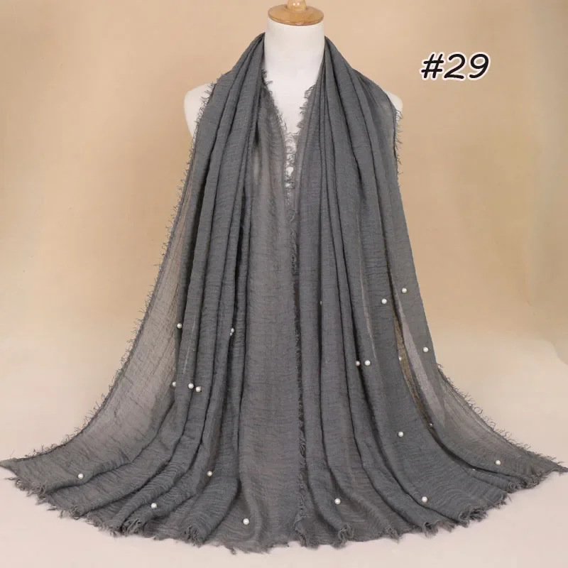 Plain Crinkled Cotton Muslim Hijab Scarf Women Ladies Scarfs Shawls Tassel Head Wrap Pearl Beads Head Scarves Soft Muffler Stole