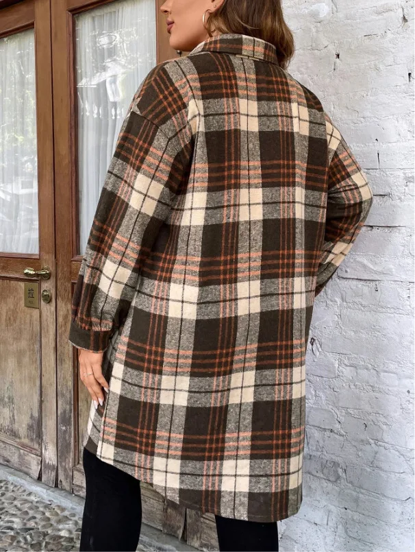 Plus Size Autumn Midi Plaid Striped Print Shirts Coats Women Irregular Pleated Fashion Ladies Blouses Casual Loose Woman Shirts