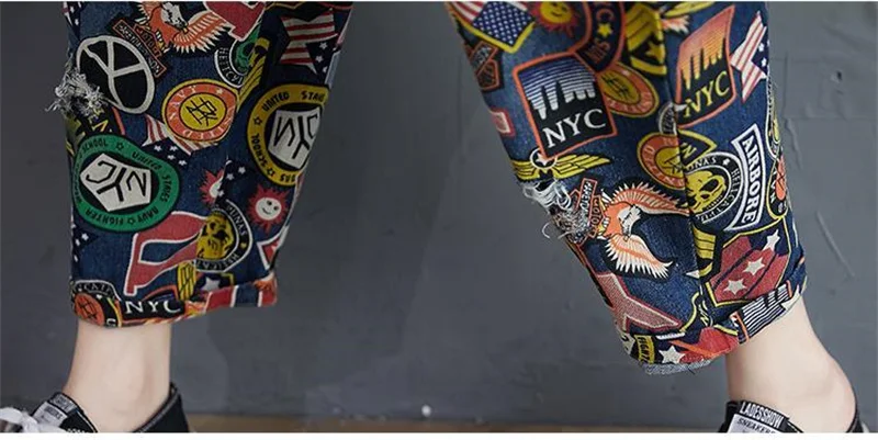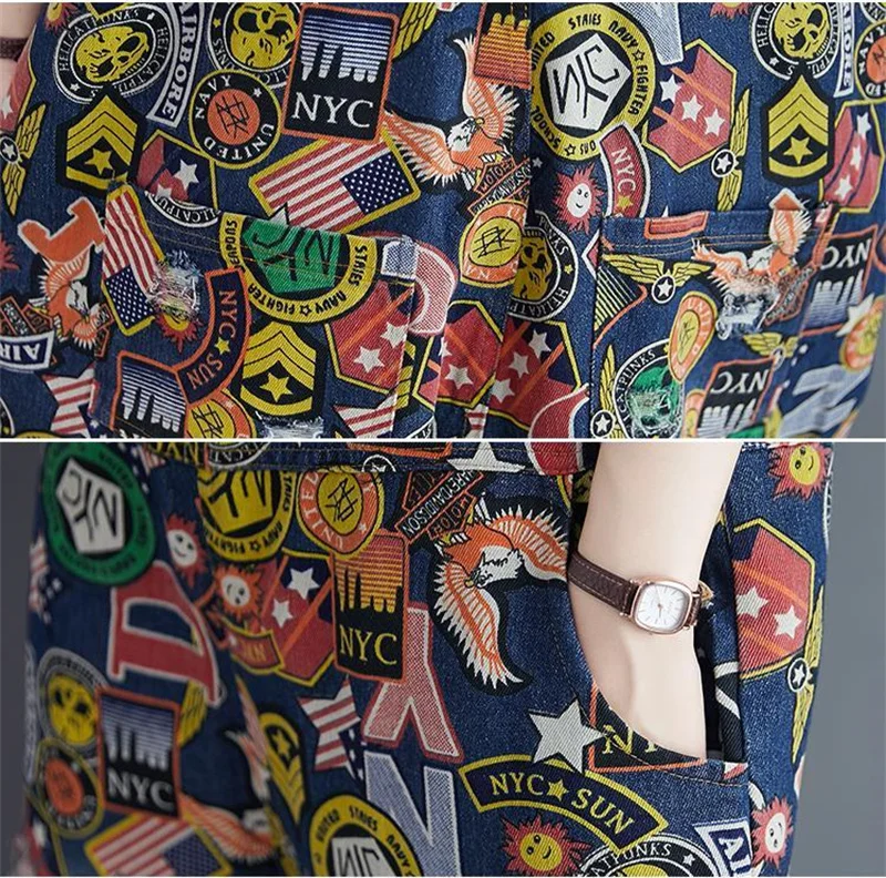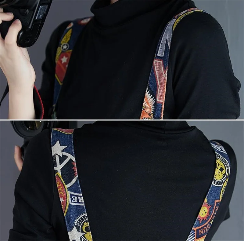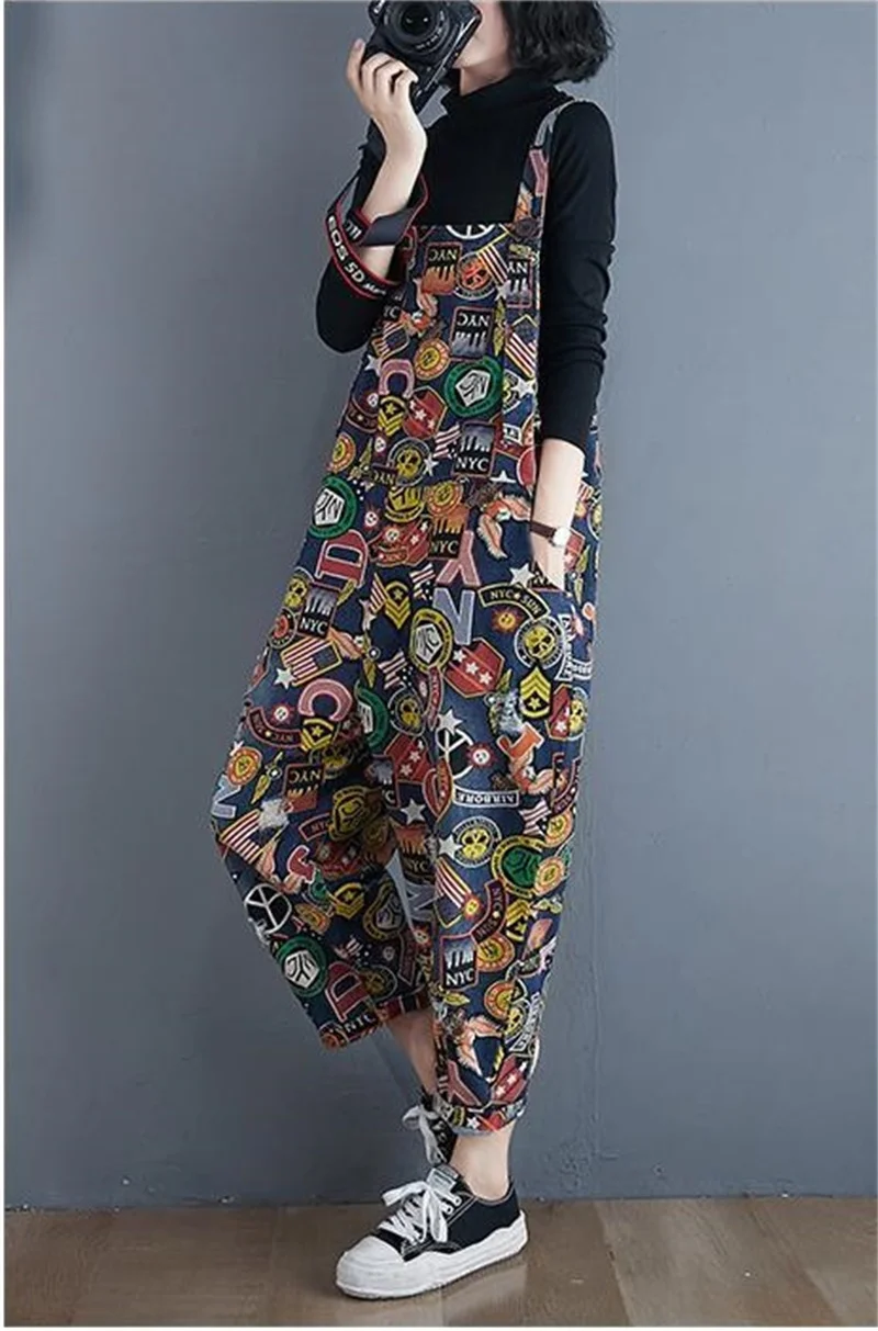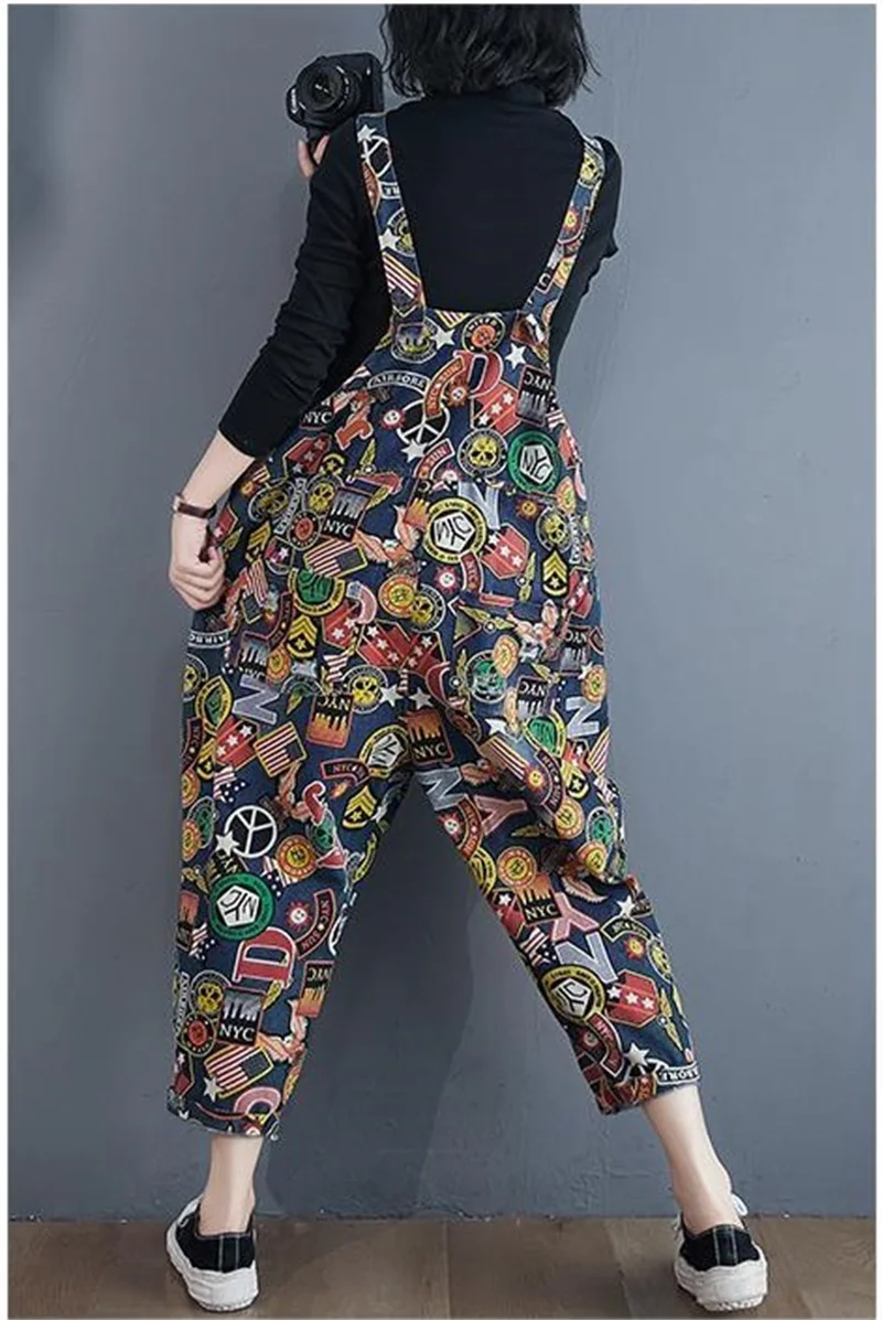 Printed Denim Strap Pants For Women's Jeans 2024 Spring Summer New High Waisted Versatile Loose Fitting Jumpsuit Female