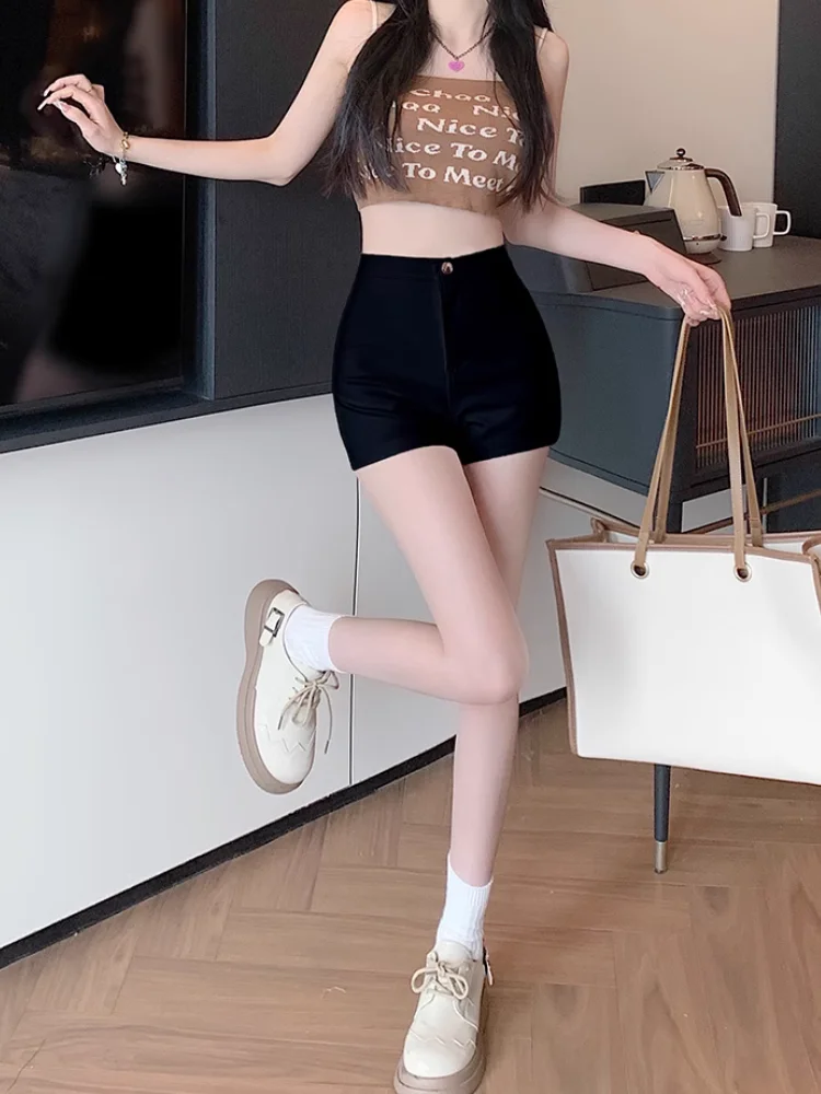 Sexy Shorts Women Summer High Waist Slim Elastic Casual Tight Hot Pants Korean Outer Wear Bottoms Female Clothes Black White