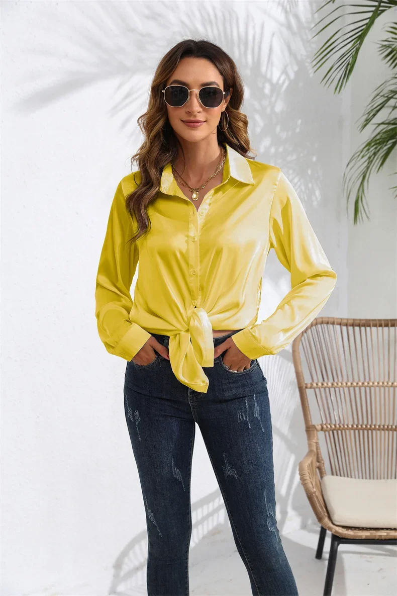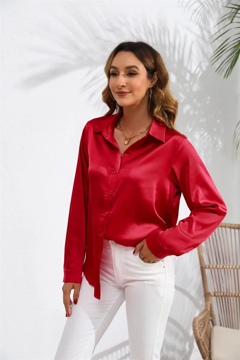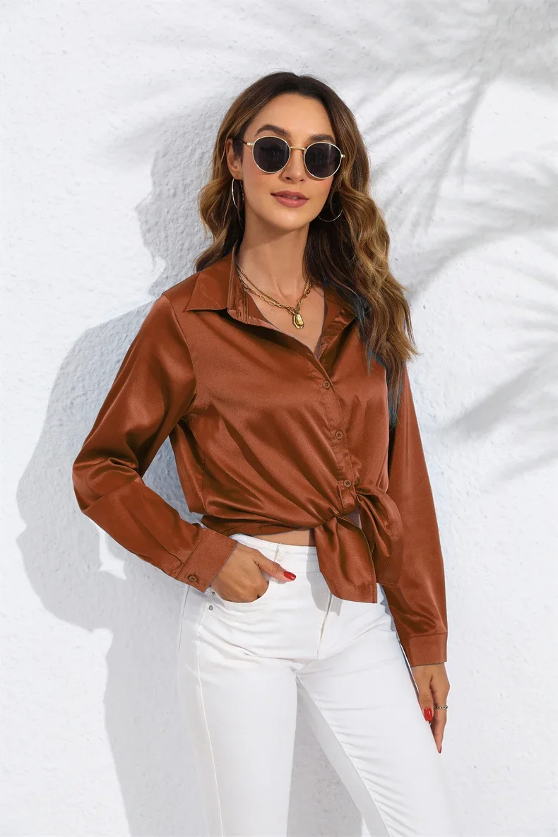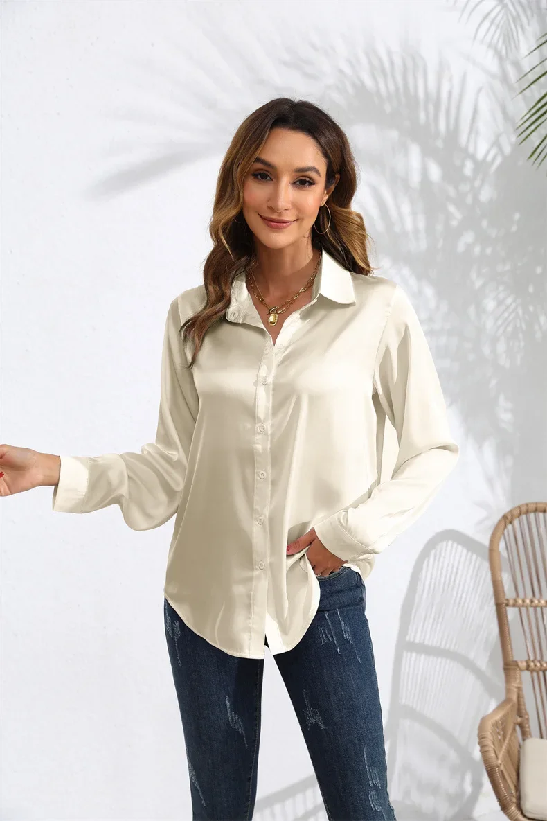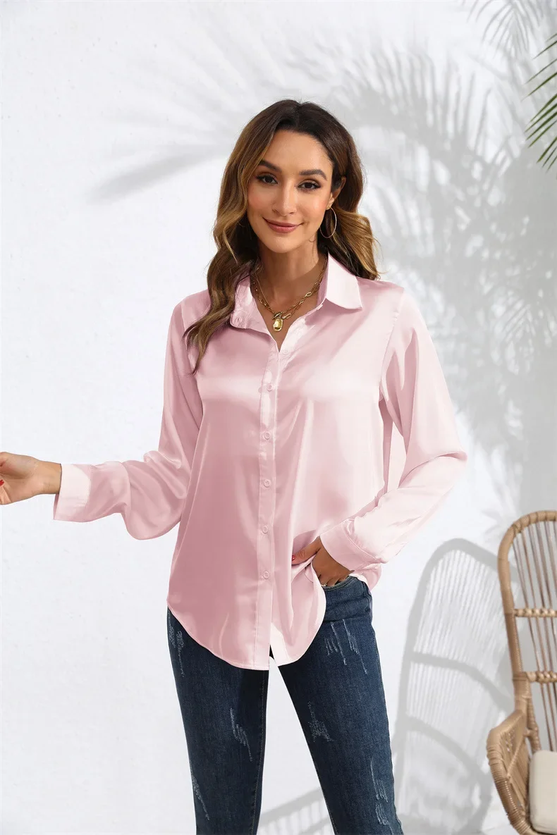 Spring and Autumn real photography in Europe and the United States women's solid color satin sateen long-sleeved women's shirts