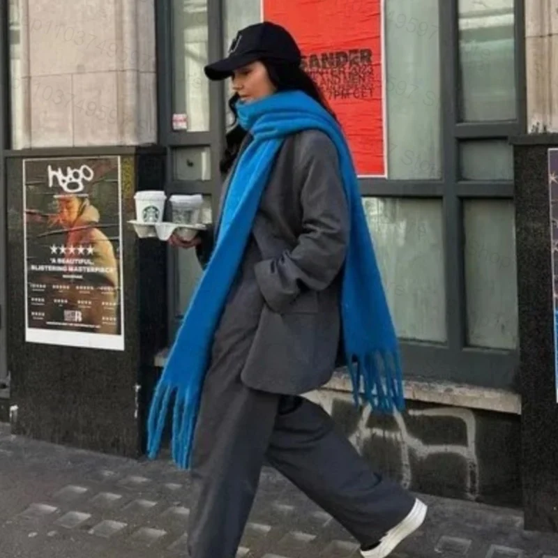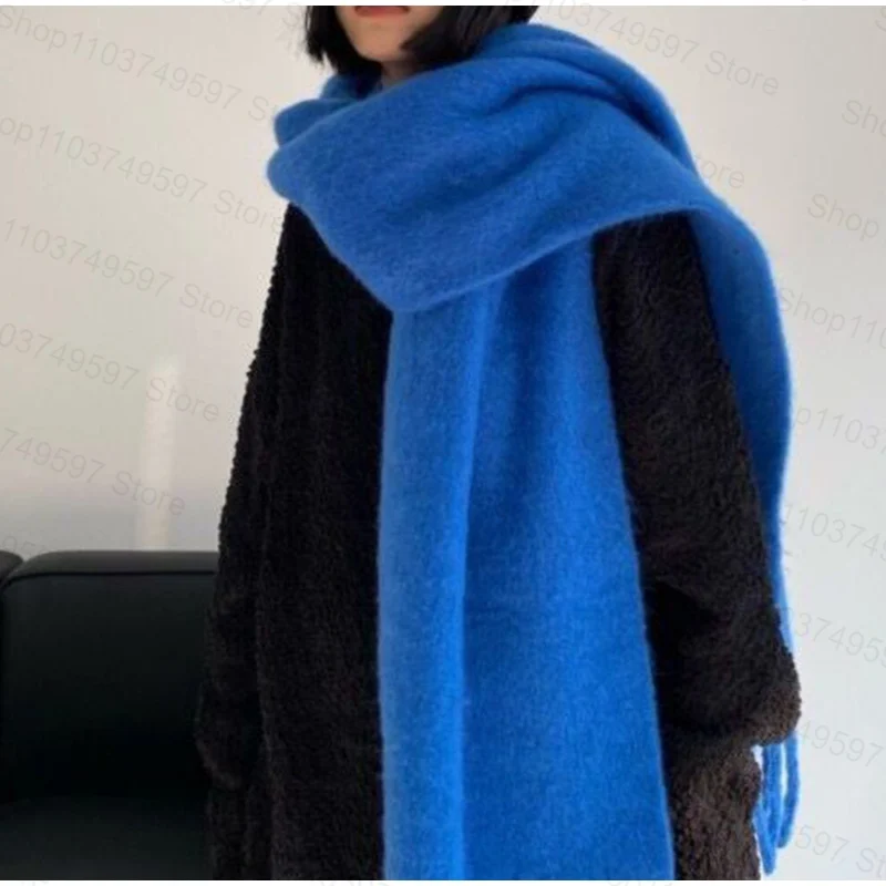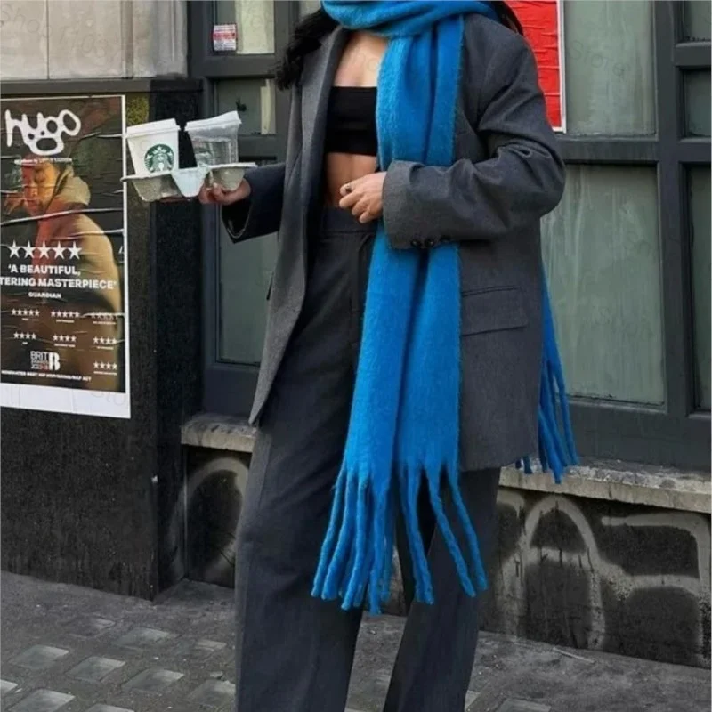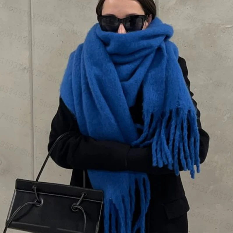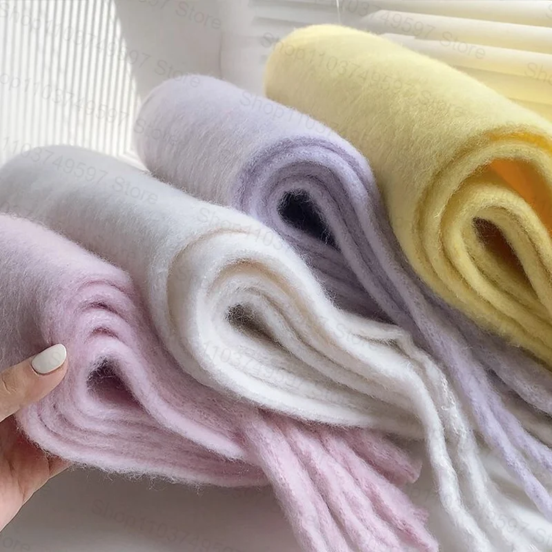 Winter Warm Thicken Scarf Luxury Cashmere Women's Scarfs Solid Color Minimalism Shawl Long Soft Fluffy Classic Tassel Shawls