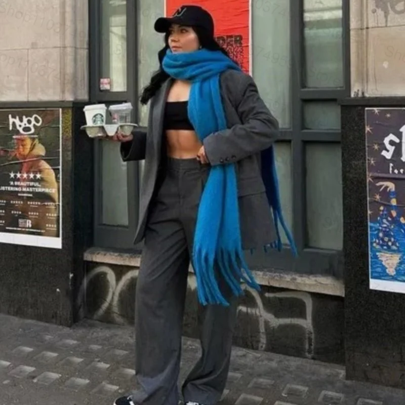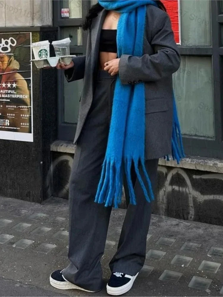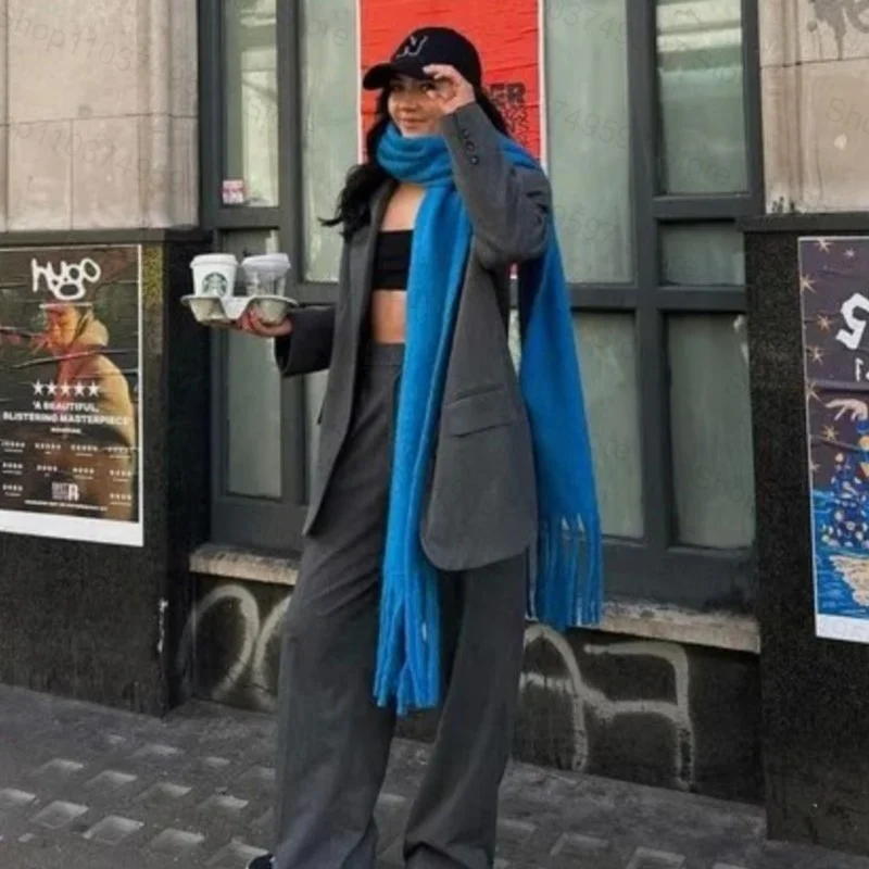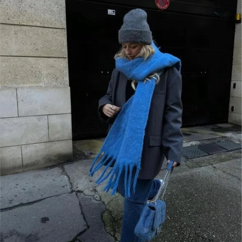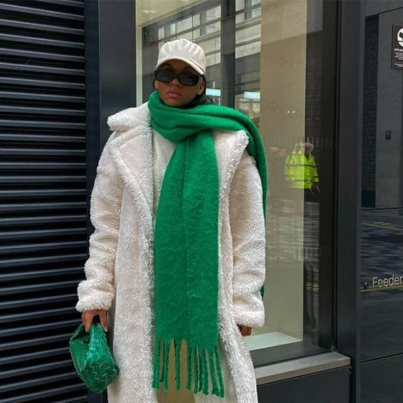 Winter Warm Thicken Scarf Luxury Cashmere Women's Scarfs Solid Color Minimalism Shawl Long Soft Fluffy Classic Tassel Shawls