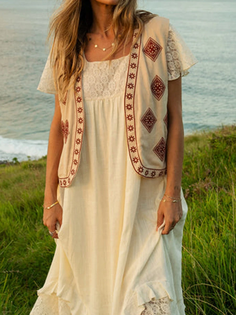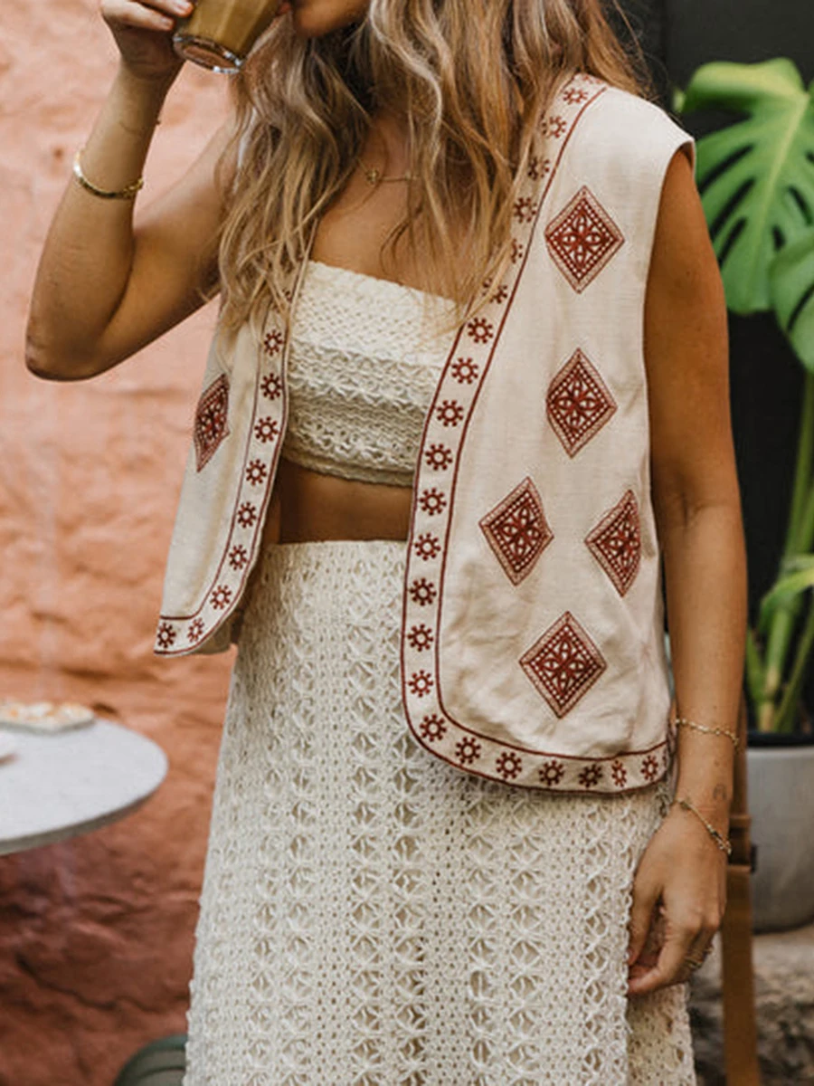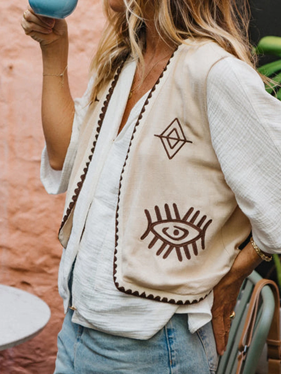 Women's Vest Tops Casual Fashion Embroidery Sleeveless Open Front Boho Cardigan for Party Club