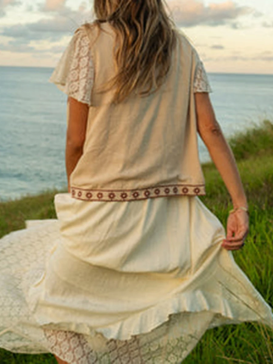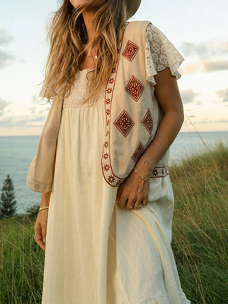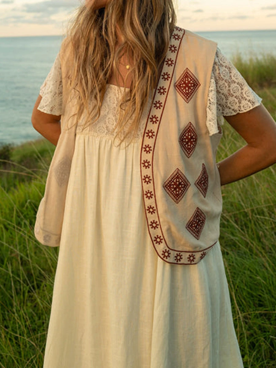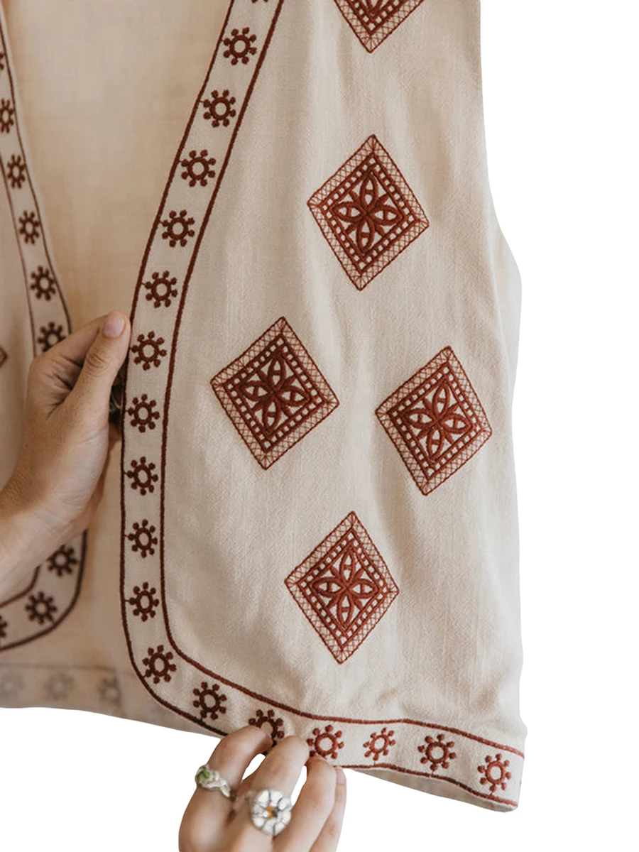 Women's Vest Tops Casual Fashion Embroidery Sleeveless Open Front Boho Cardigan for Party Club